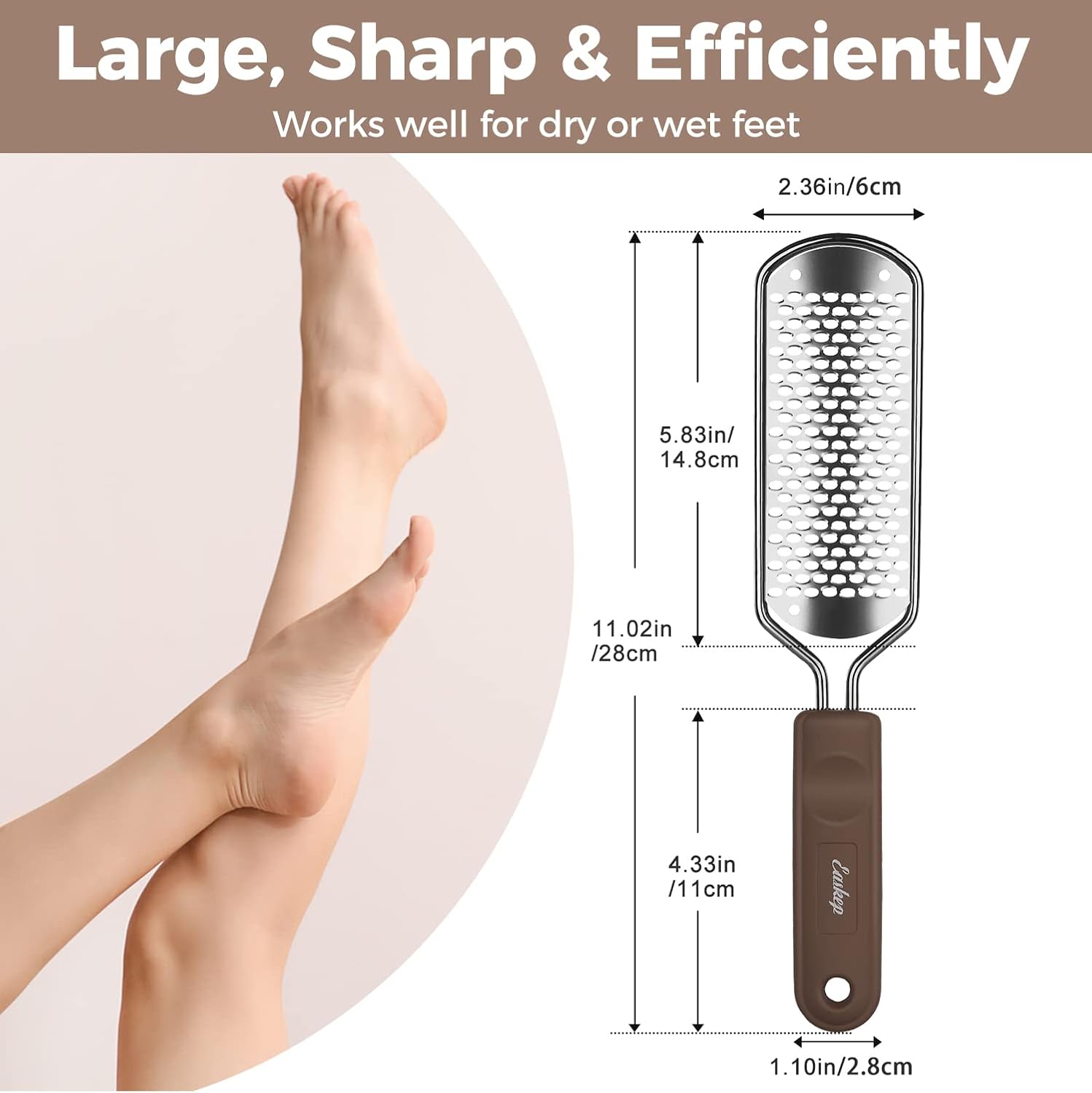 - INTEGRATED DESIGN - The whole frame is made of stainless steel, connected to the handle, which avoids handle breaking by overpressure. Just hold the anti-slip handle and press the concave, the hard-dead corns that are hard-to-reach calluses removed easily! The best choice for preparing for the sandal season and the elders