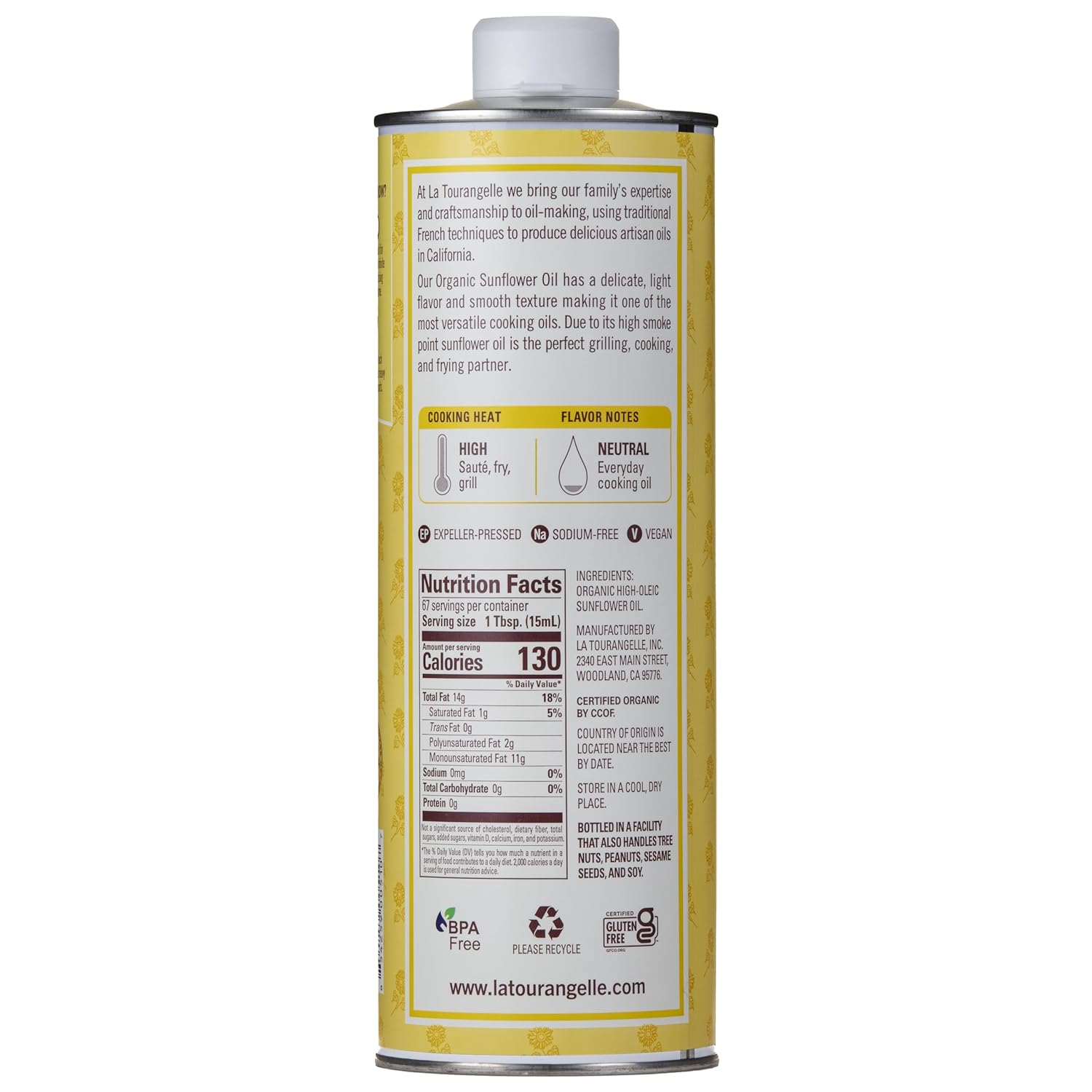 La Tourangelle, Organic High Oleic Sunflower Oil, Neutral Oil For Medium to High Heat Cooking and Skin Care, Non GMO, Pesticide and Chemical Free, 33.8 Fl Oz