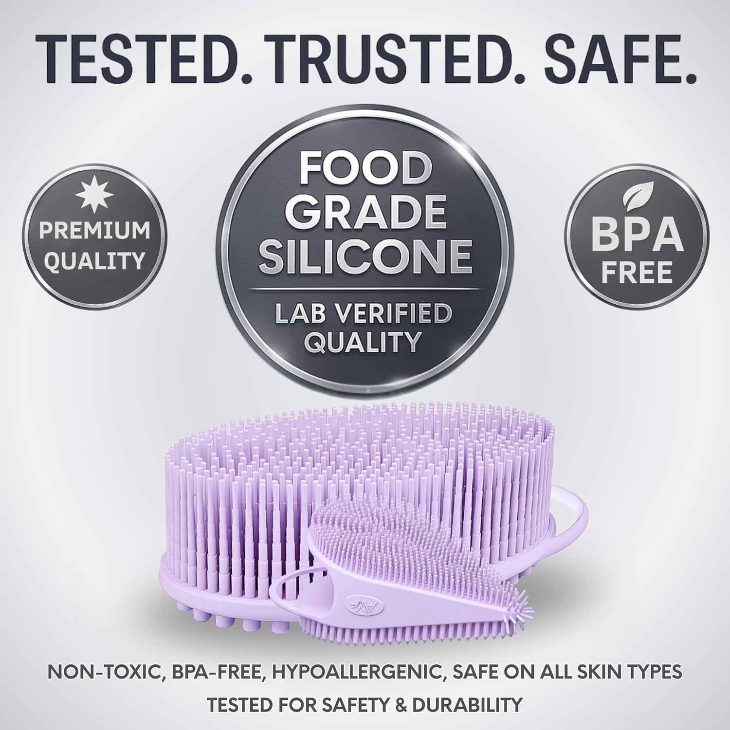 Avilana Silicone Body Scrubber – Gentle Shower Brush & Loofah Alternative- Food Grade & Lab Tested – Fast-Drying, Hygienic, BPA-Free Silicone Body Gentle Exfoliator (Lavender, Body & Face)