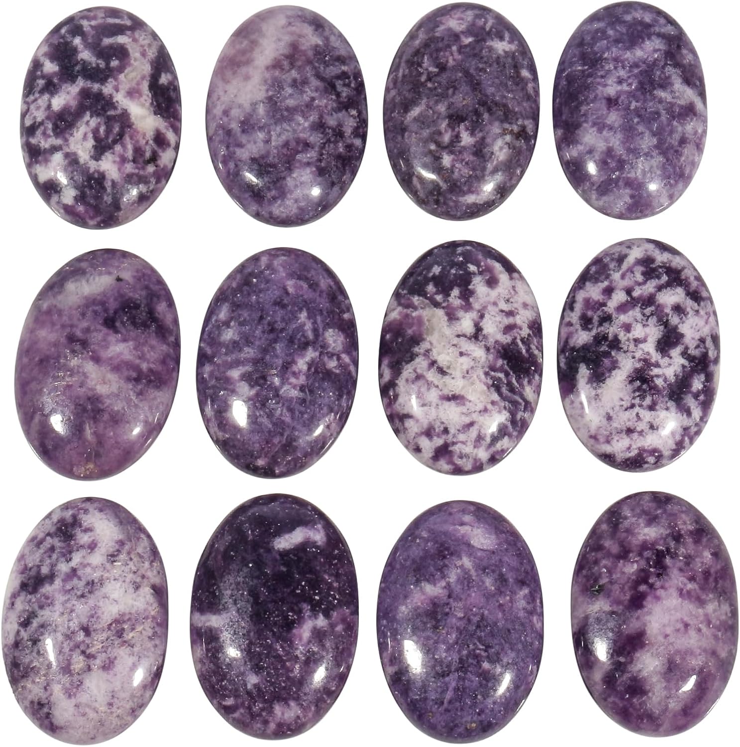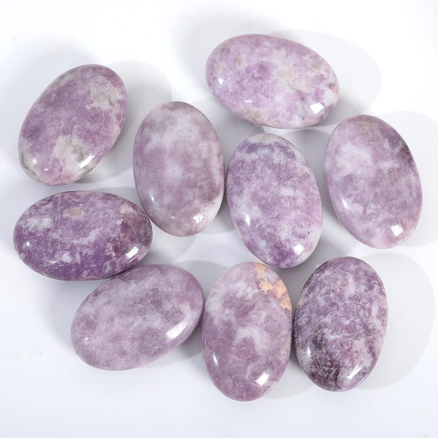 Natural Purple Lepidolite Oval Polished Worry Stones, Healing Crystal Indoor Fountain Stones Massage Energy Anxiety Relief Items