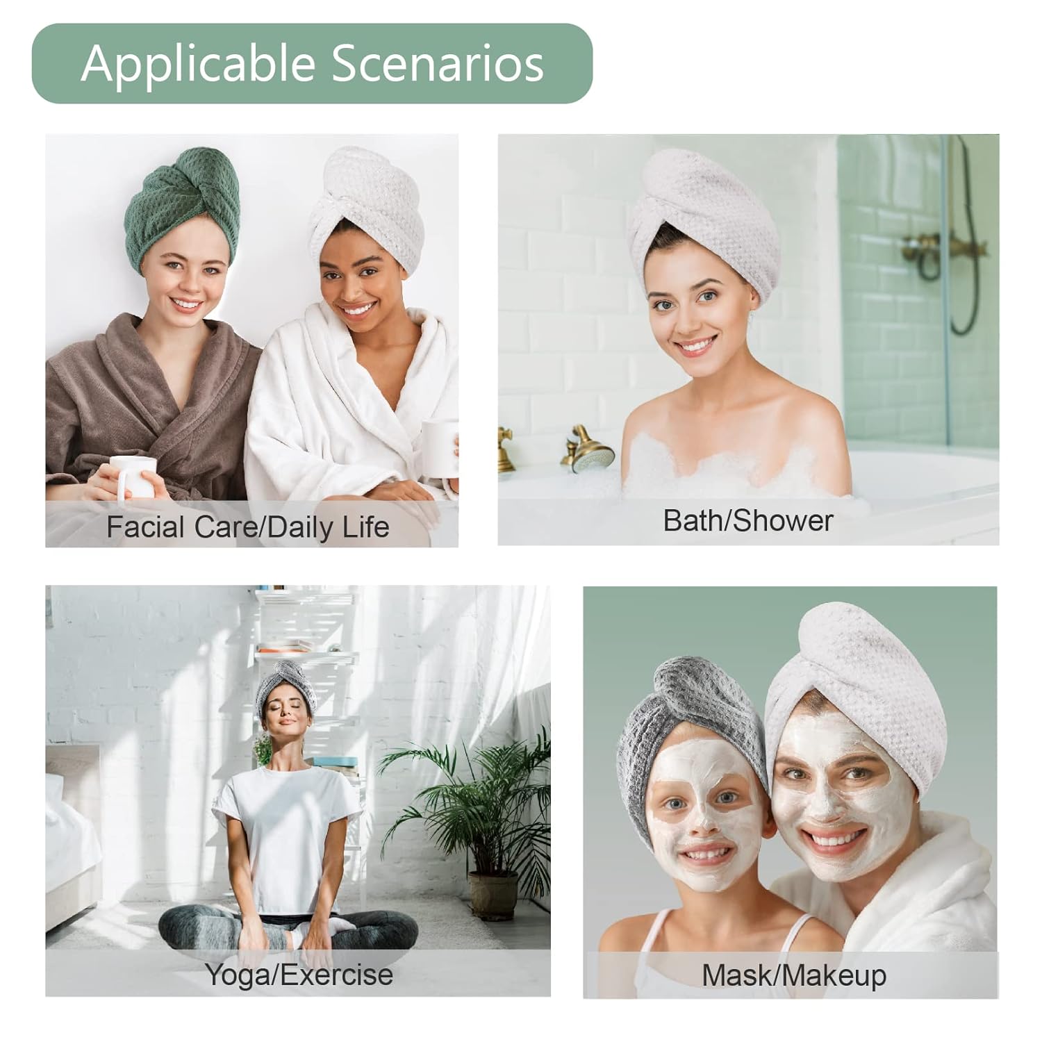 - Super Absorbent Microfiber hair towel- Made of waffle superfine terry fabric, it is breathable, anti-drying, durable and can be used multiple times to make hair dry quickly. Two pieces in a box can be replaced