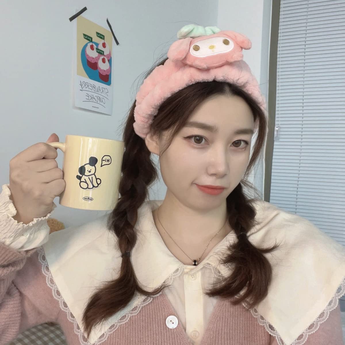 Kawaii Spa Headband for Washing Face, Cute Pink for Make Up, Washing, Party, Soft for Woman Girls