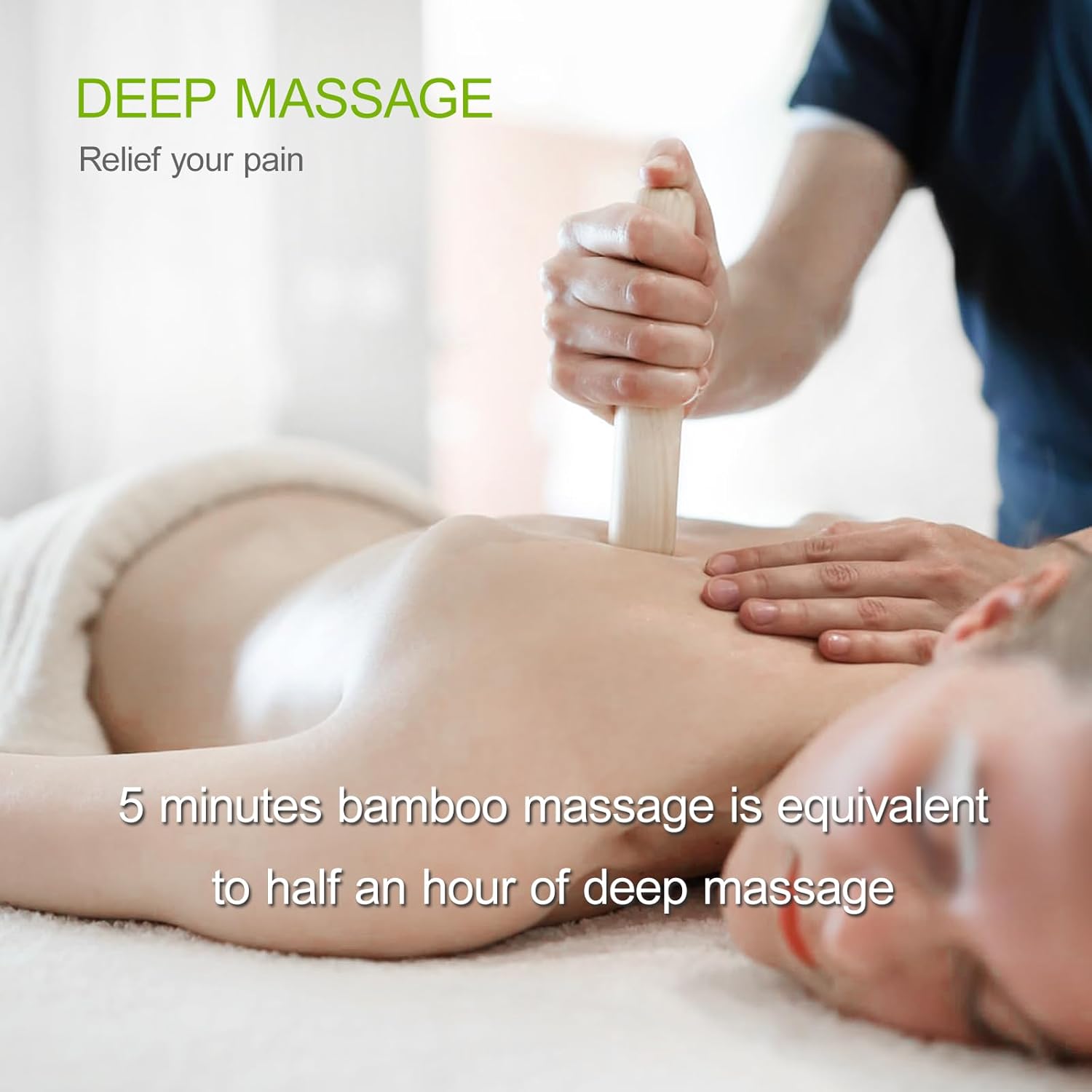 - BEST NATURAL THERAPY AND DEEP MASSAGE:Good assistances to help touch deep tissues.Bamboo massage sticks reduces stress on the therapistsâ hands,with less stress on hands ,fingers ,wrists and arm which wonât get tired.Easily massage deeply to relax your body, mind and help sleep