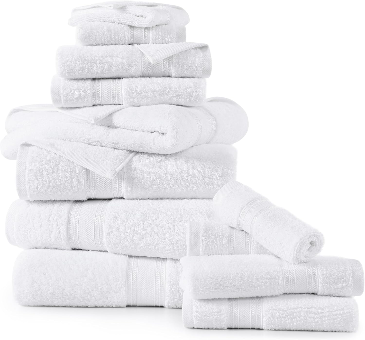 LANE LINEN Luxury Bath Towels Set - 12 Piece, 100% Cotton, Zero Twist, Super Soft & Absorbent, Includes 4 Bath Towels, 4 Hand Towels, 4 Washcloths - White