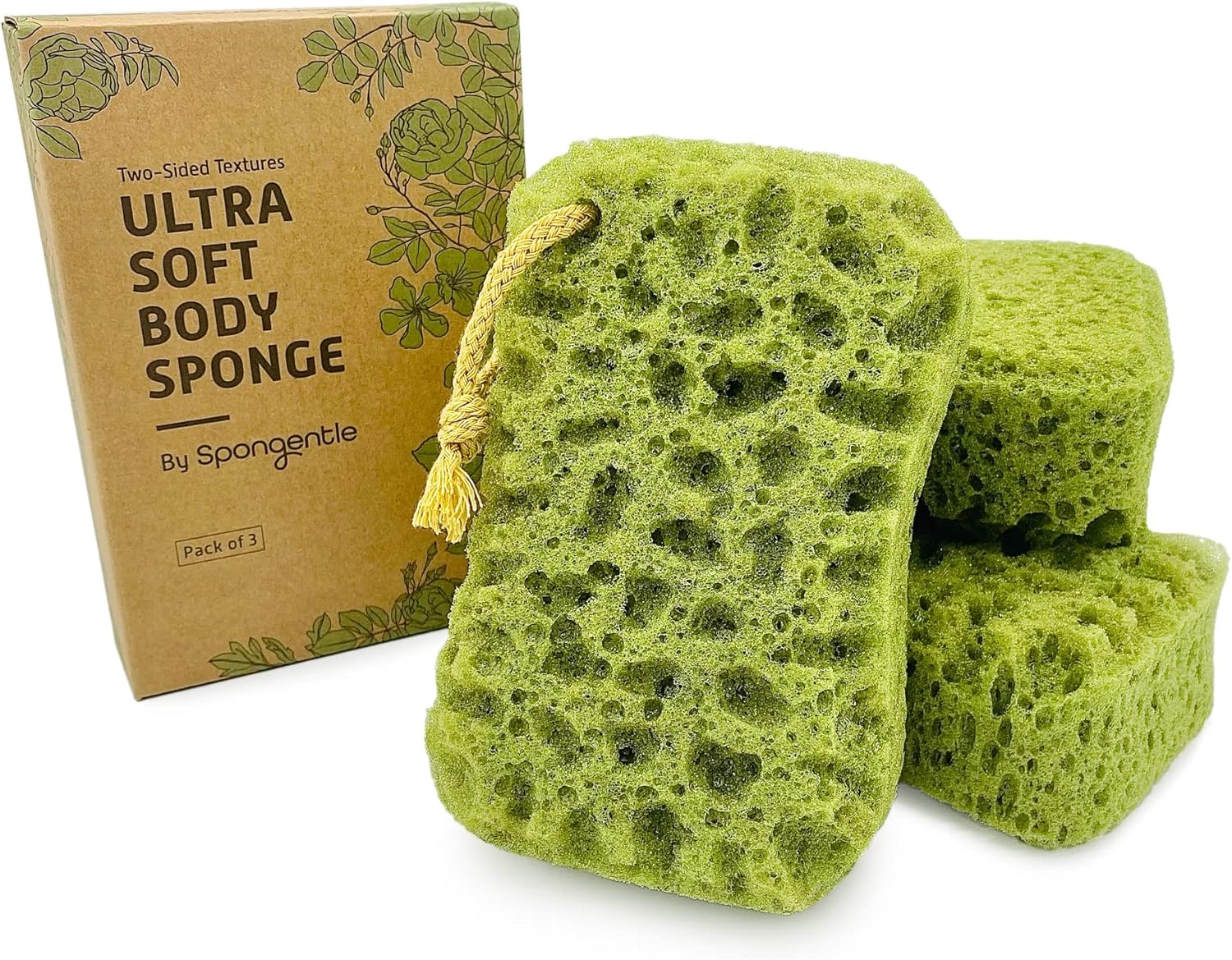 - [MULTIPLE TEXTURES] - The only body sponge with two unique sides! It features a smooth surface for gentle exfoliation as well as a textured surface for deep exfoliation to remove the oil and gunk from deep within your pores. Comes with 3 Pieces.