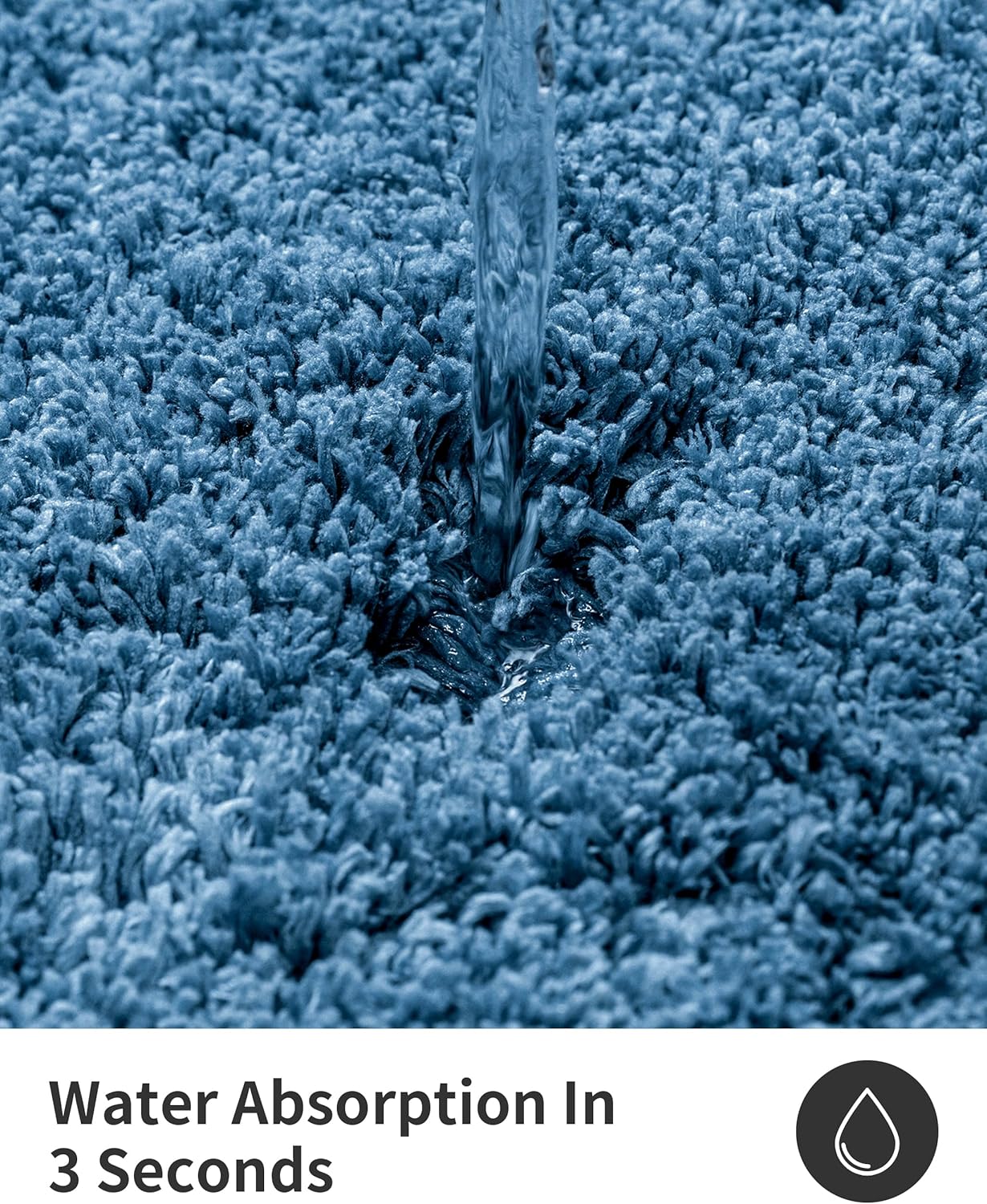 ILANGO Blue Bathroom Rugs 24" × 17" Small Non Slip & Super Absorbent Extra Thick Soft, Washable Bath Mat for Floor, Microfiber Plush Shaggy Bath Rug with Rubber for Bathtub Shower Room Sink