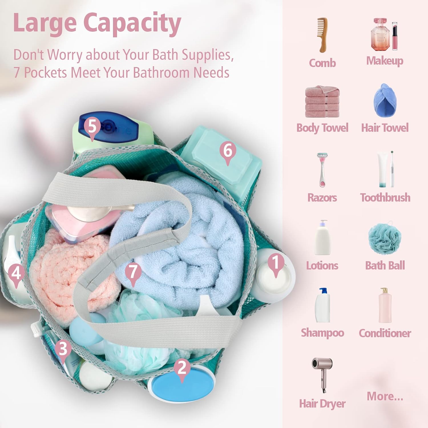 - Multi-Purpose: This mesh shower caddy tote bag is lightweight and compact; Perfect for college, dorm, gym, bathroom, toiletry, cleaning supplies, beach, swimming, camping; Nice gift for friends or college freshmen who use communal bathroom