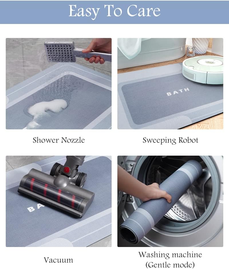 - Easy Clean& Quick Dry: Cleaning is a breeze with the stain-resistant surface, making it ideal for households with pets. A simple wipe or rinse will restore the shower rug to its brand-new appearance. The quick dry bath mat's numerous tiny pores facilitate fast water evaporation in natural air, magically vanishing watermarks within minutes. Bathroom mat quick dry and won’t be too damp for the next user.