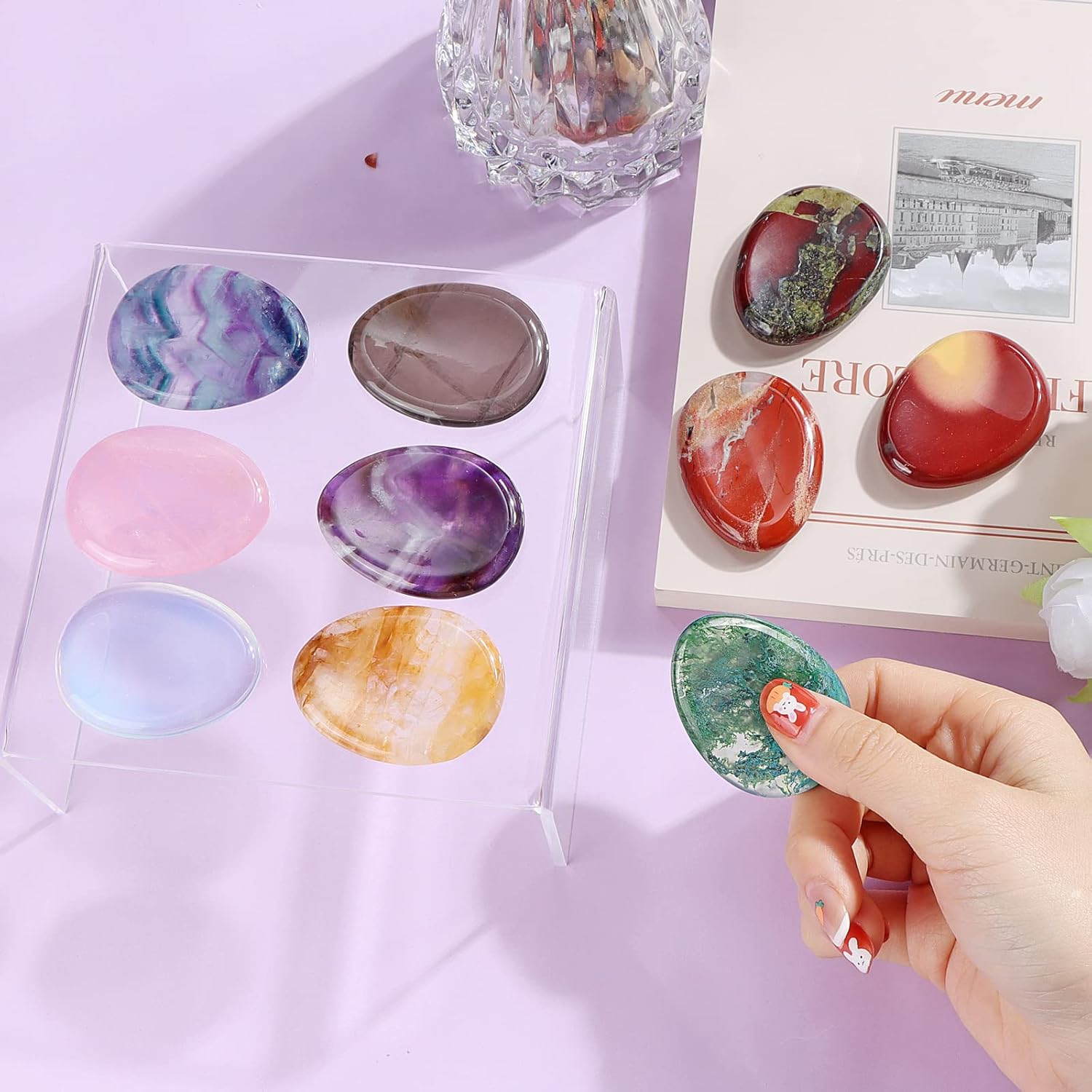 - Please Note: Worry stones also as palm stones,thumb stones,crystal stones,chakra stones. Due to the nature of gemstones, each moss agate crystal worry stones may slightly vary in size, color, and stone grain. You will receive one similar to the picture.