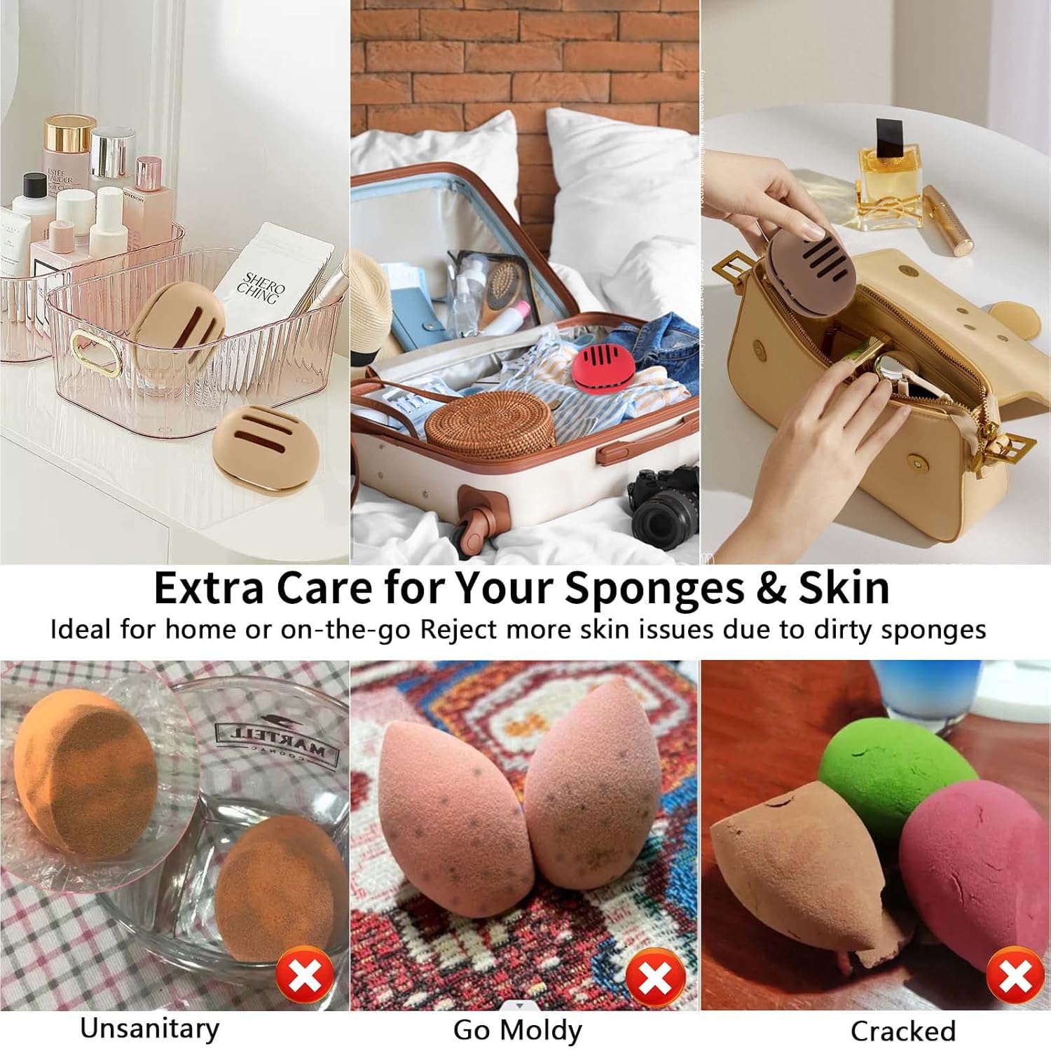 - SPONGE DEFENDER ON-THE-GO: Our breathable makeup sponge holder brings extra care and protection in a hygienic condition,both for your sponges and skin. It is just great for travel with easier carry to hold all diff sizes of your sponges,avoid mess when storages in makeup bag! Flawless makeup on-the-go has never been easier