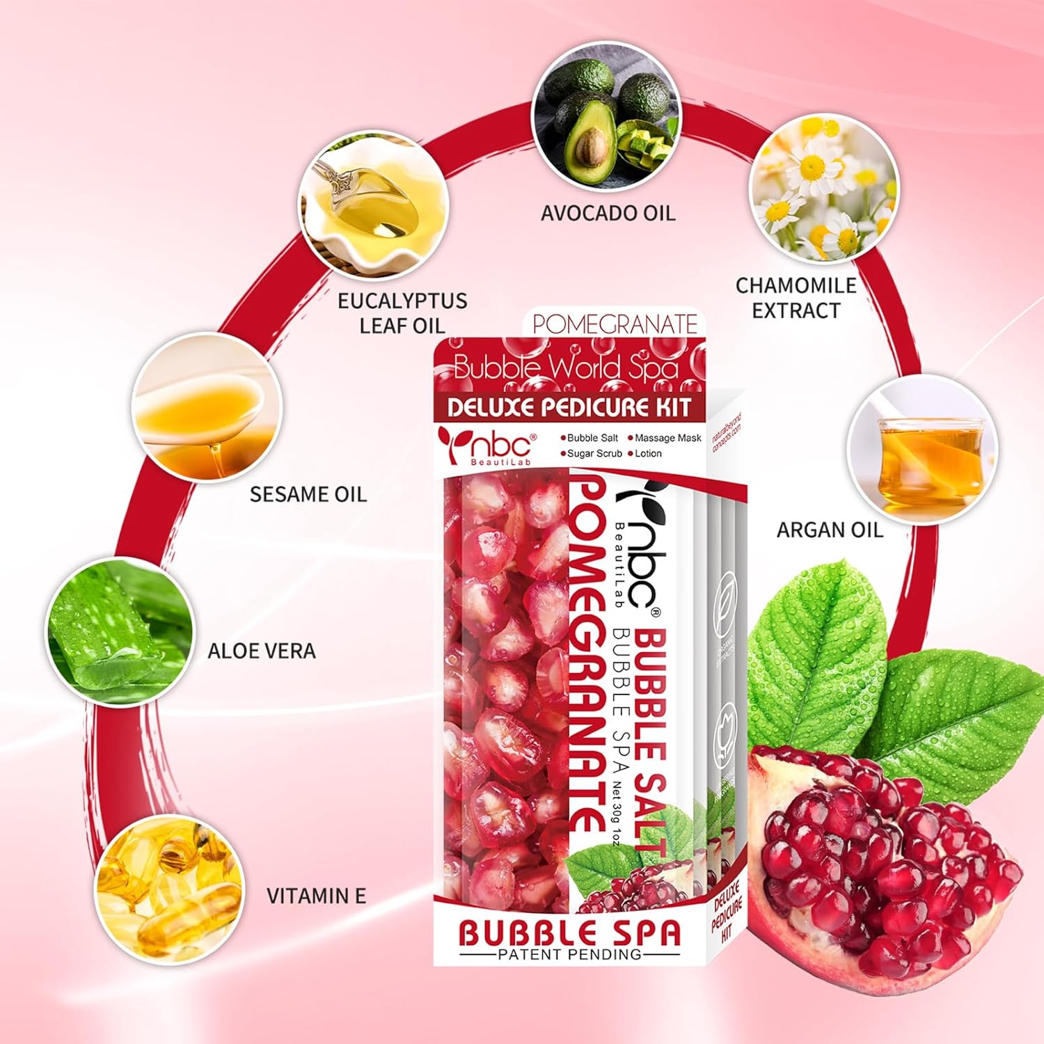 Pedicure Kit Foot Soak Set: Bubble Salt, Sugar Scrub, Massage Mask, Massage Lotion in a Box, 4 Step Foot Spa Kit for Dry Feet,Tired Feet(3 Set Pomegranate)