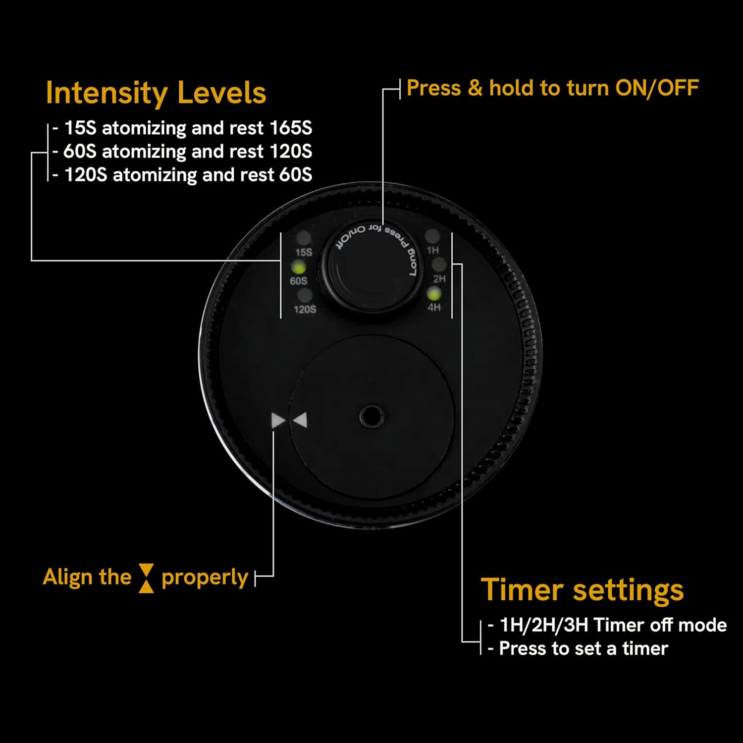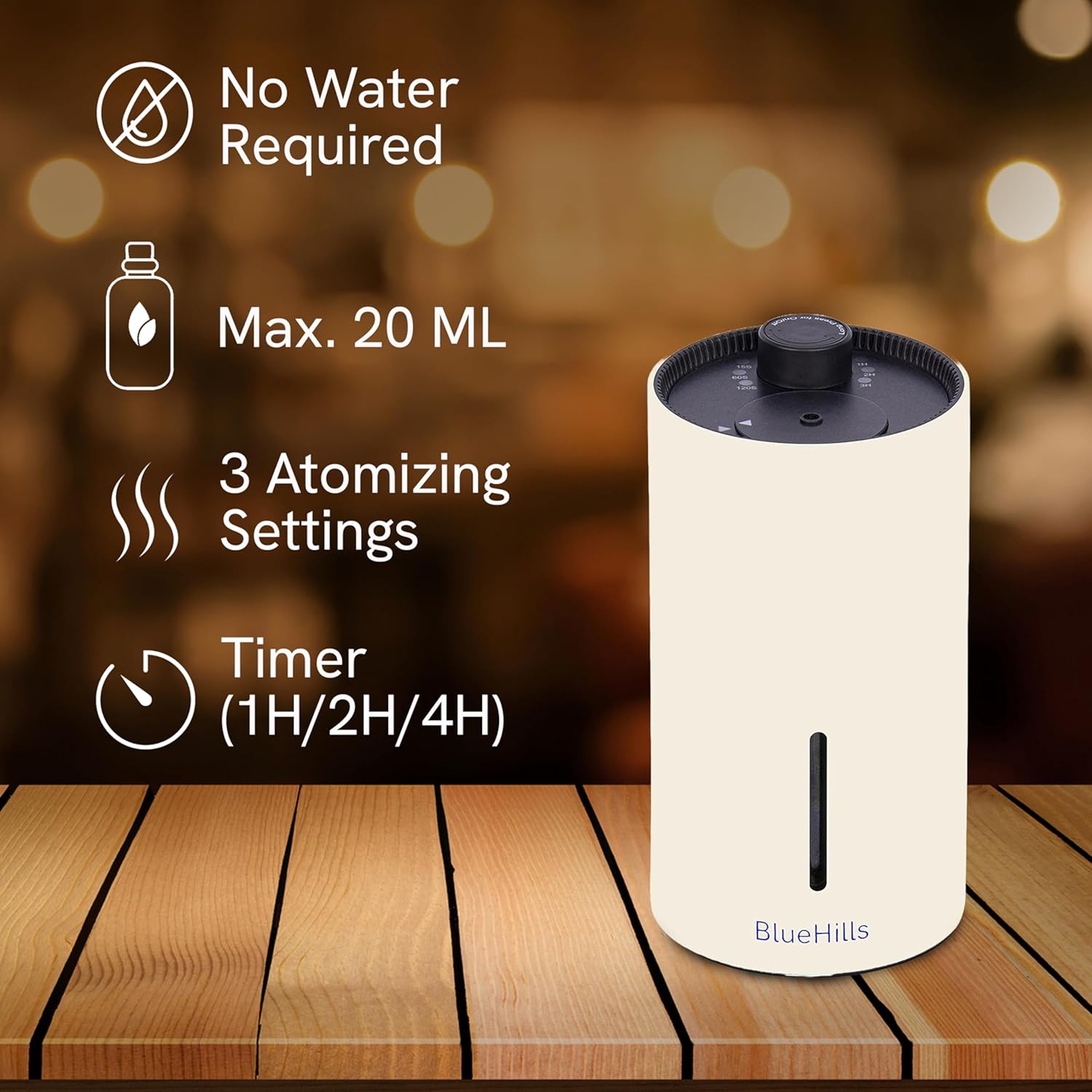 - Battery powered Diffuser with Timer setting: Battery powered diffuser comes with three timer settings, which allow you to choose the duration of the diffuser (1H, 2H, 4H) that allows you to choose the one that best suits your needs.