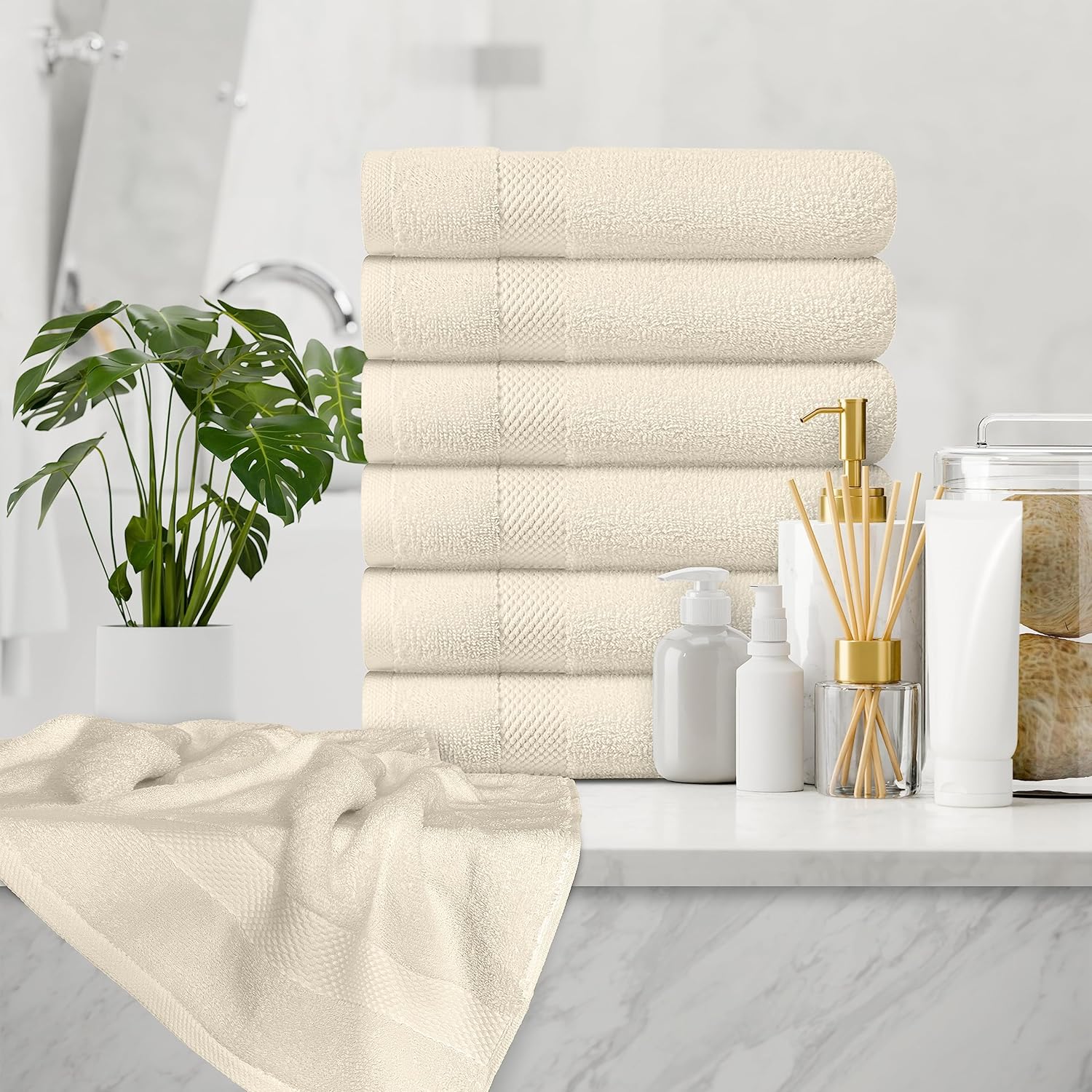 White Classic Luxury Ivory Hand Towels - Soft 100% Turkish Cotton | Highly Absorbent Hotel spa Bathroom Towel Collection | 16x30 Inch | Set of 6