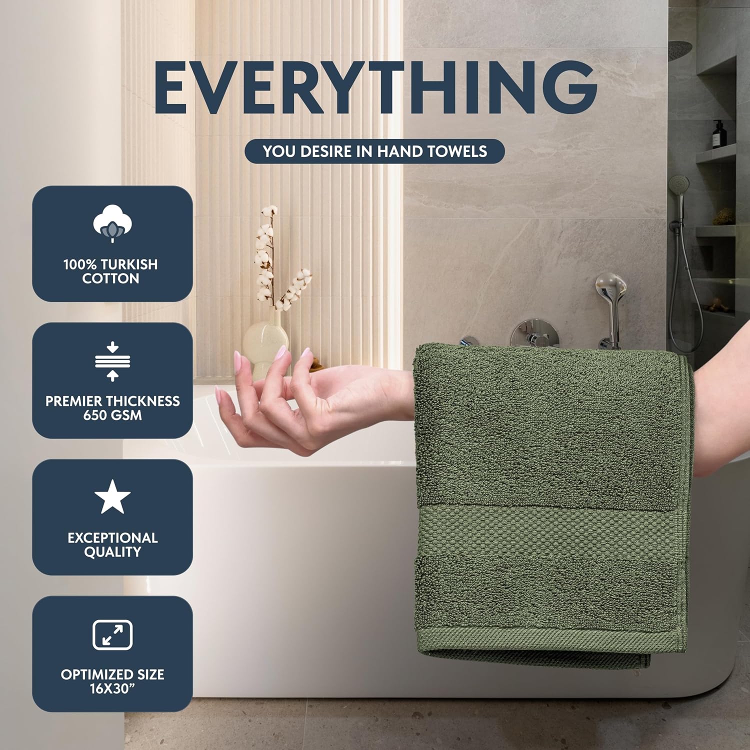 White Classic Luxury Forest Green Hand Towels - Soft 100% Turkish Cotton | Highly Absorbent Hotel spa Bathroom Towel Collection | 16x30 Inch | Set of 6