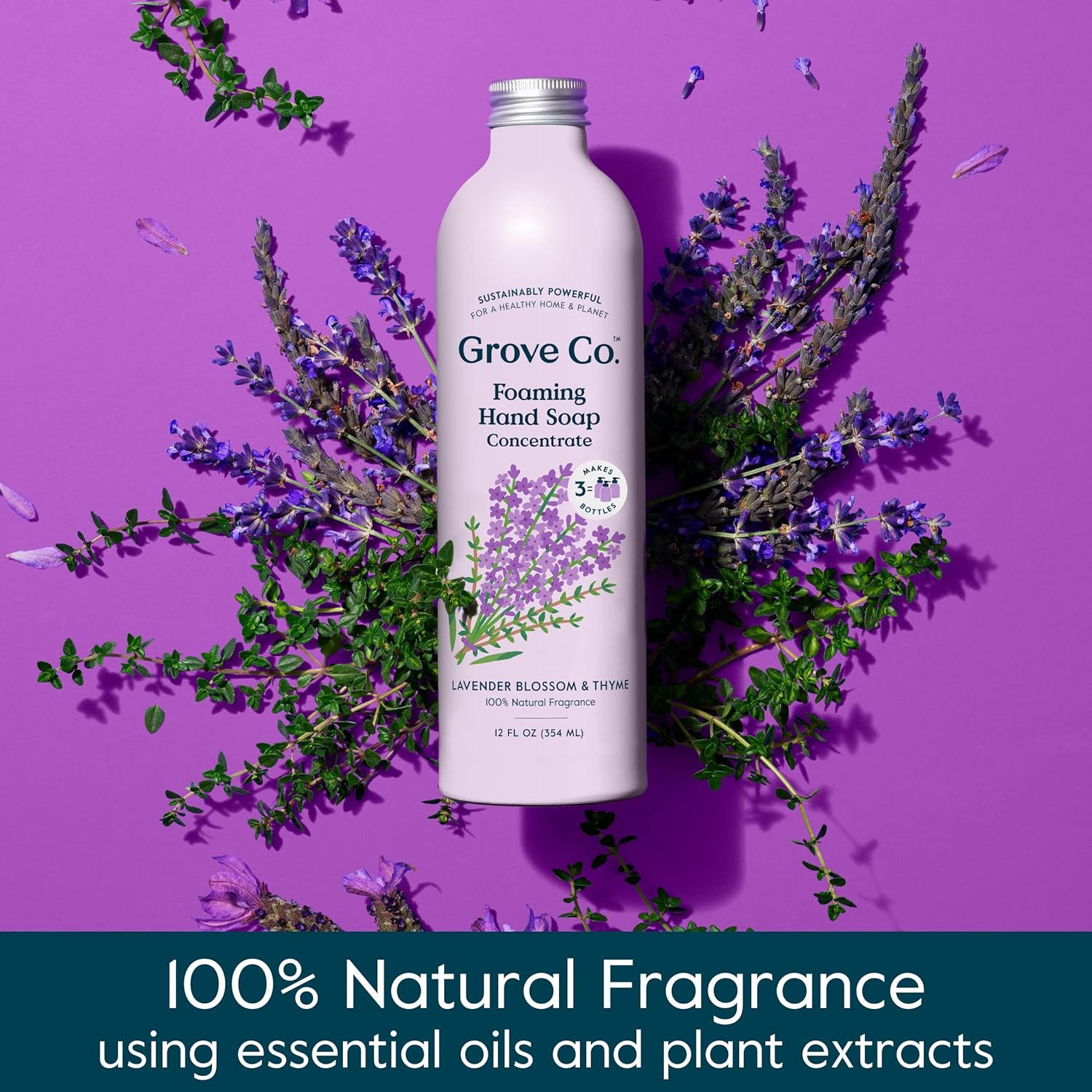 - HAND WASH & DISPENSER SET: Keep your hands feeling clean and soft with this Grove Co. bundle that includes one Lavender and Thyme Foaming Hand Soap Refill, a Glass Soap Dispenser, and a Silicone Sleeve. A durable home starter kit or housewarming gift