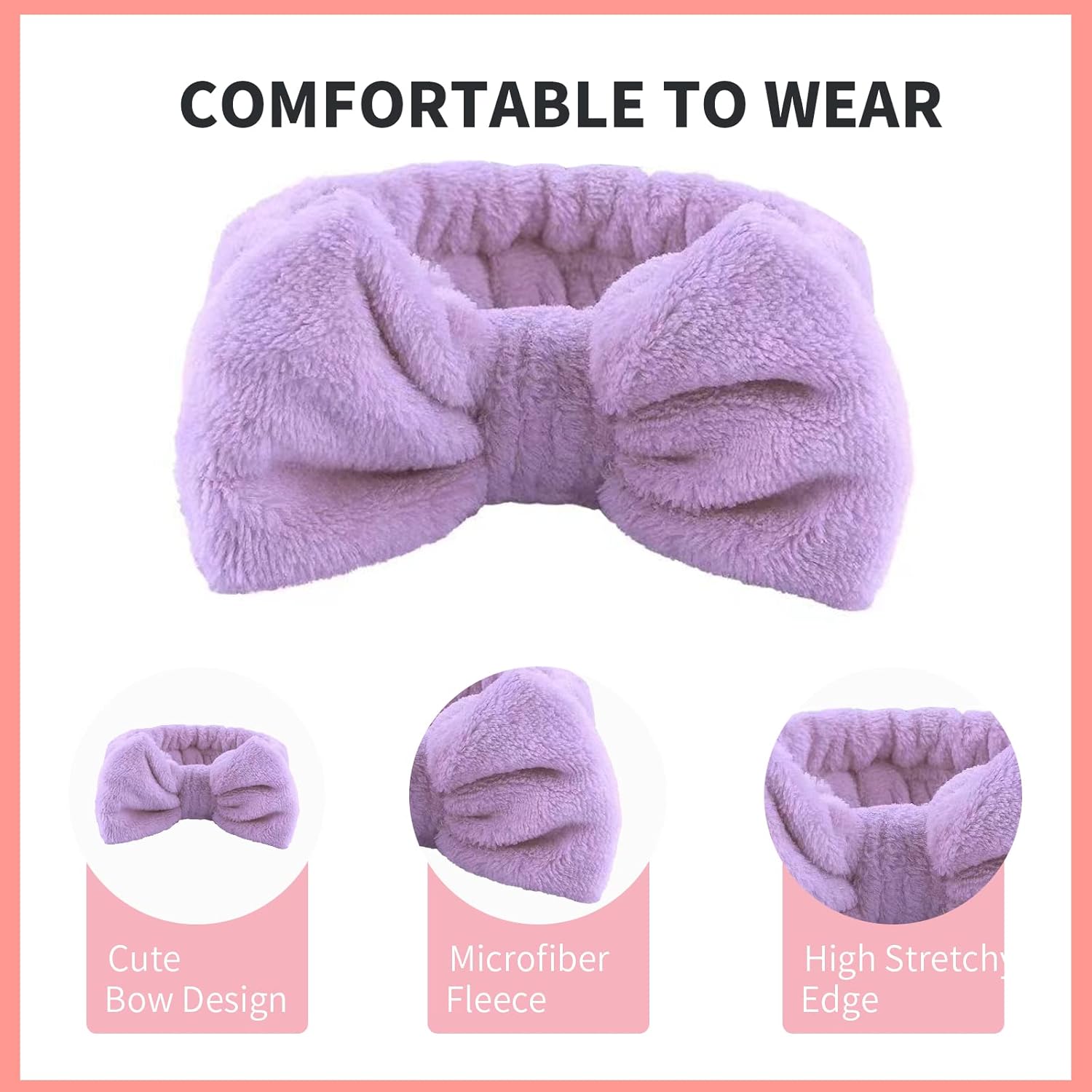 - 3 Elegant Color: Package included 3pcs bow tie headband for washing face in 3 simple and elegant color-blue, red, purple. These fluffy elastic hair band is the best choice for bathing and washing face, help you keep hair away out of face . A good bath and keep face clean will put you in a good mood!