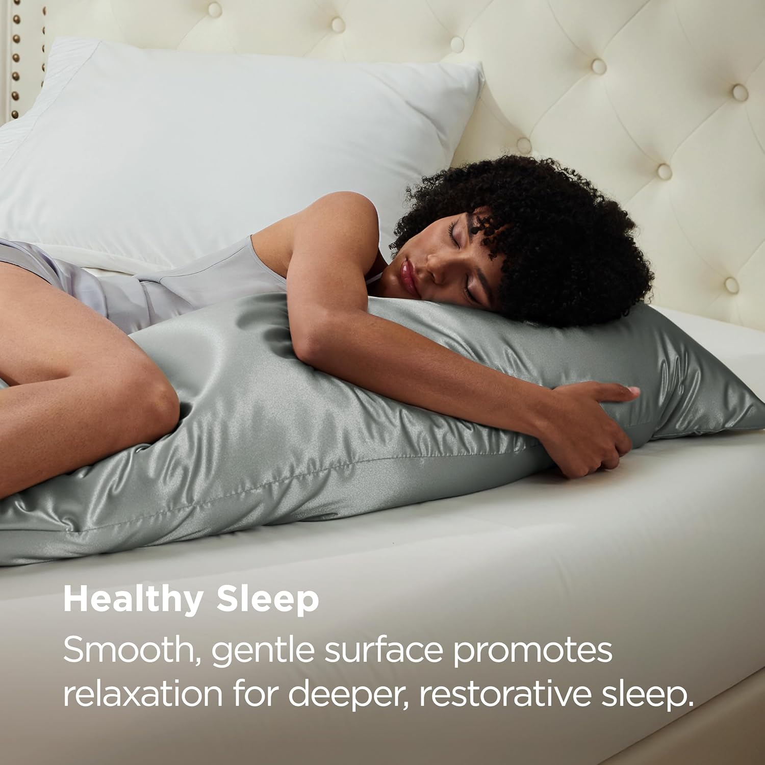 Bedsure Satin Body Pillow Pillowcase - Similar to Silk Body Pillow Cover Case with Envelope Closure,Cooling and Silky Long Pillowcase for Hair and Skin,Grey,20x54 Inches