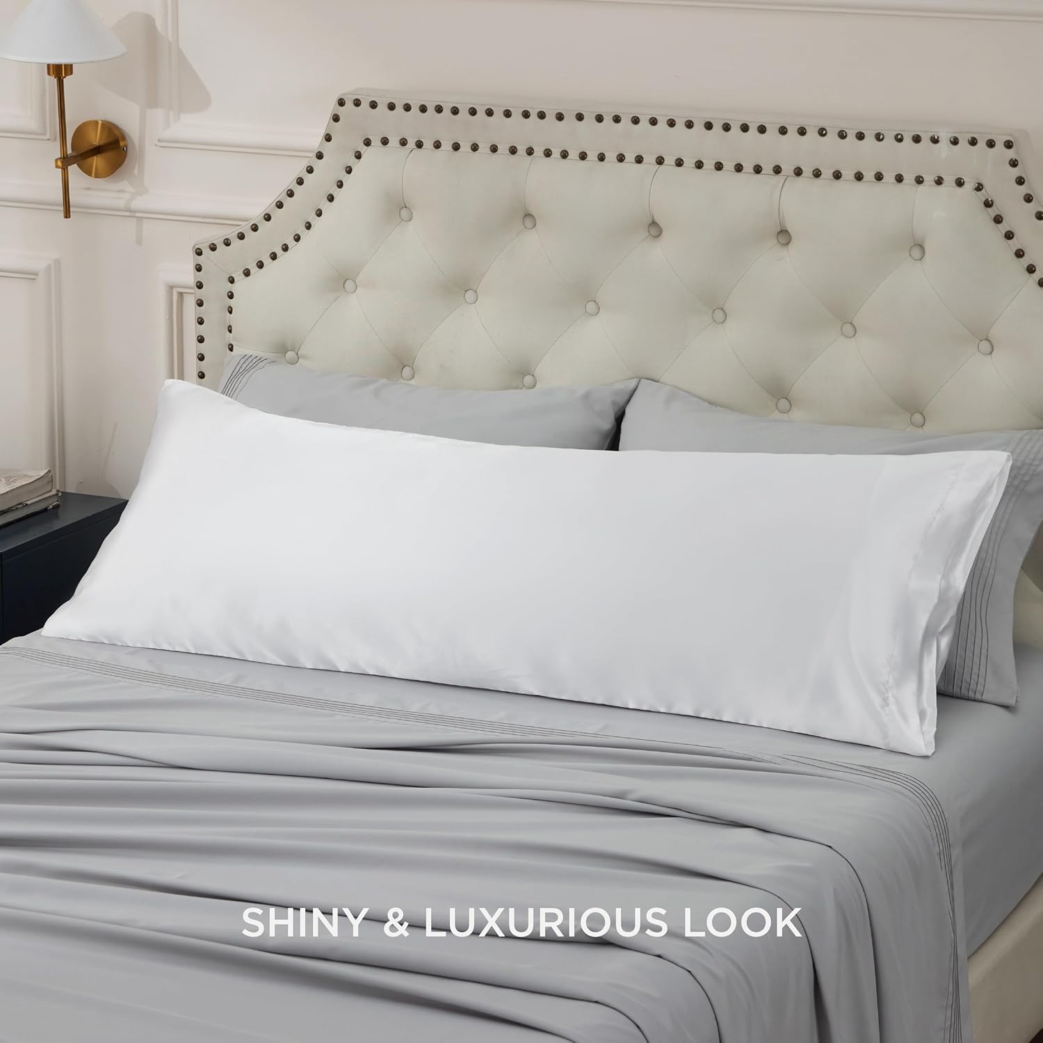 Bedsure Satin Body Pillow Pillowcase - Similar to Silk White Body Pillow Cover Case with Envelope Closure,Cooling and Silky Long Pillowcase for Hair and Skin,20x54 Inches