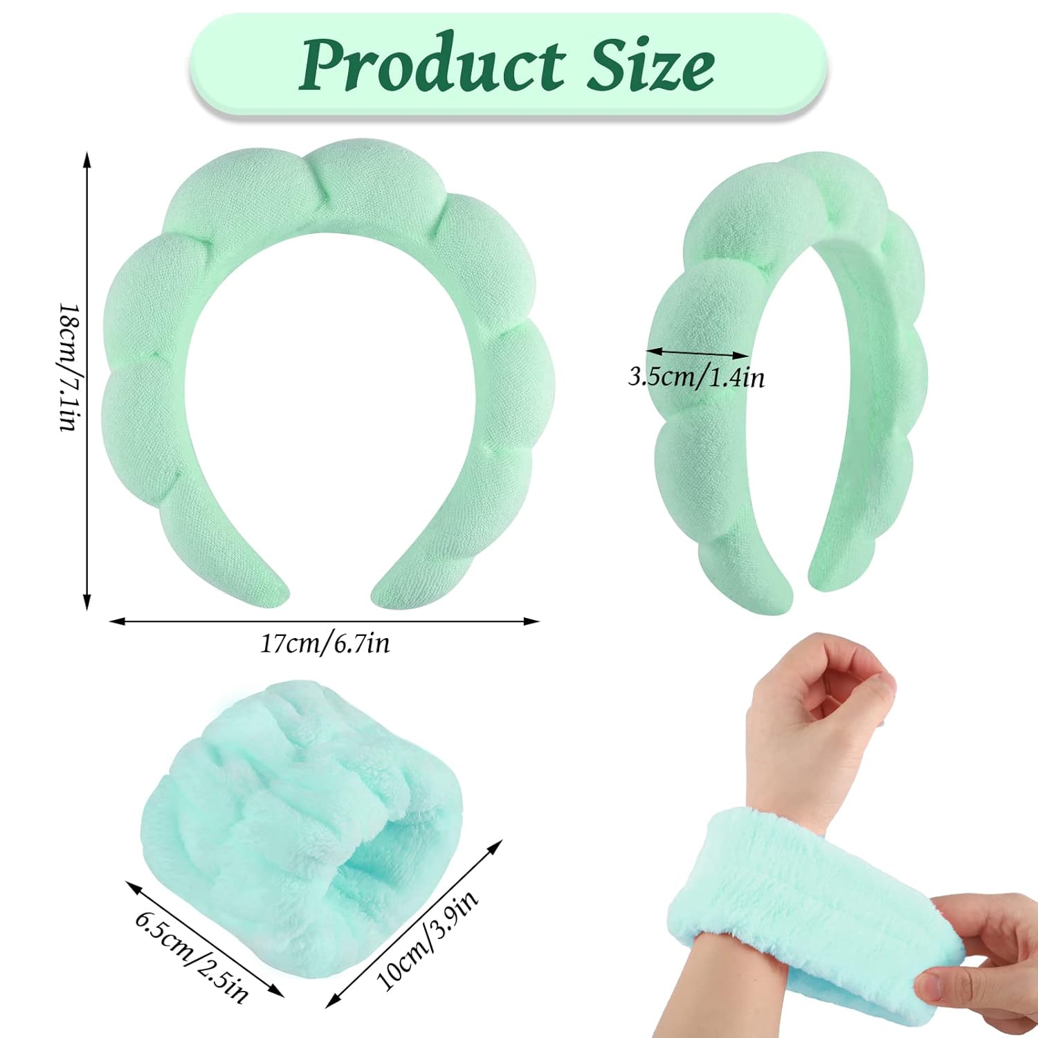 - Fit Size:Our makeup headband size is 7.08 x 6.69inch, face wash wristbands size is 2.36x3.93inch, fit most people so almost anyone can wear them.