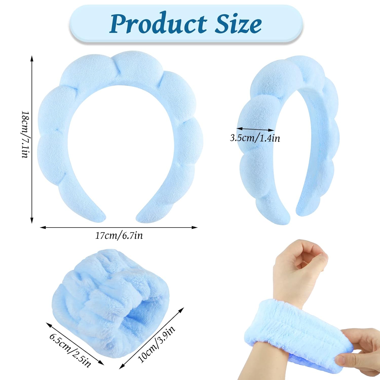 - Fit Size:Our makeup headband size is 7.08 x 6.69inch, face wash wristbands size is 2.36x3.93inch, most people can wear them.