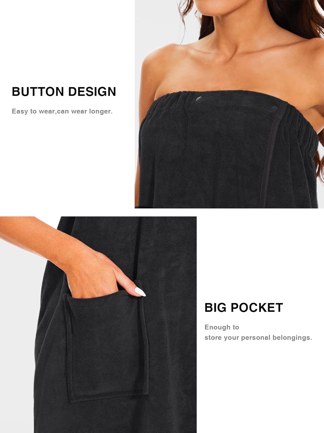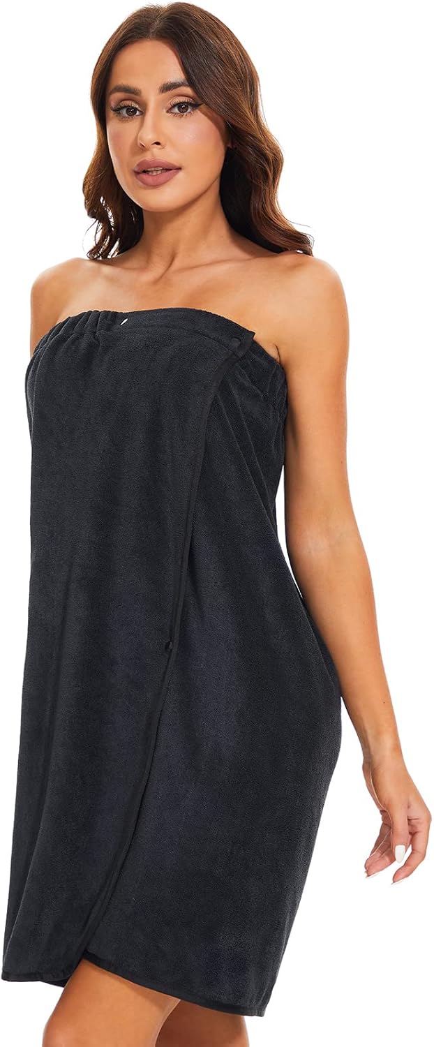 Kniffi Shower Wrap Robe for Women Bath Body Towel Wrap Spa Soft bathrobe with Adjustable Snap Closure