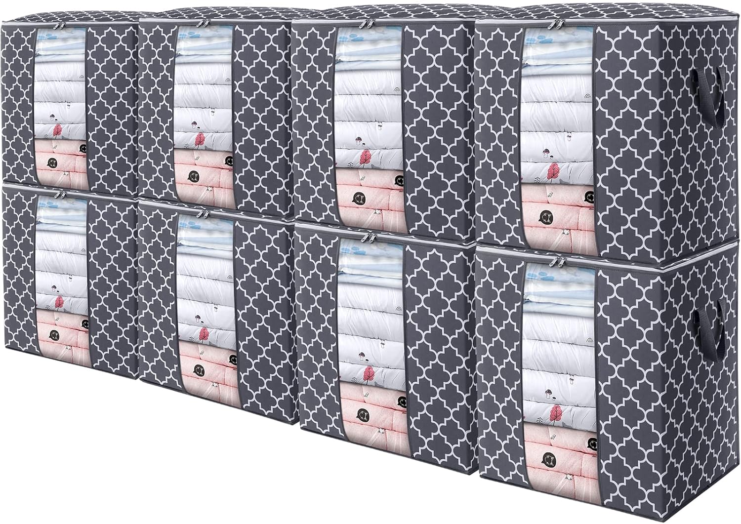 WISELIFE Storage Bags 8 Pack/100L Large Blanket Clothes Organization and Storage Containers for Comforters,Bedding, Foldable Organizer with Reinforced Handle, Clear Window, Sturdy Zippers,Gray