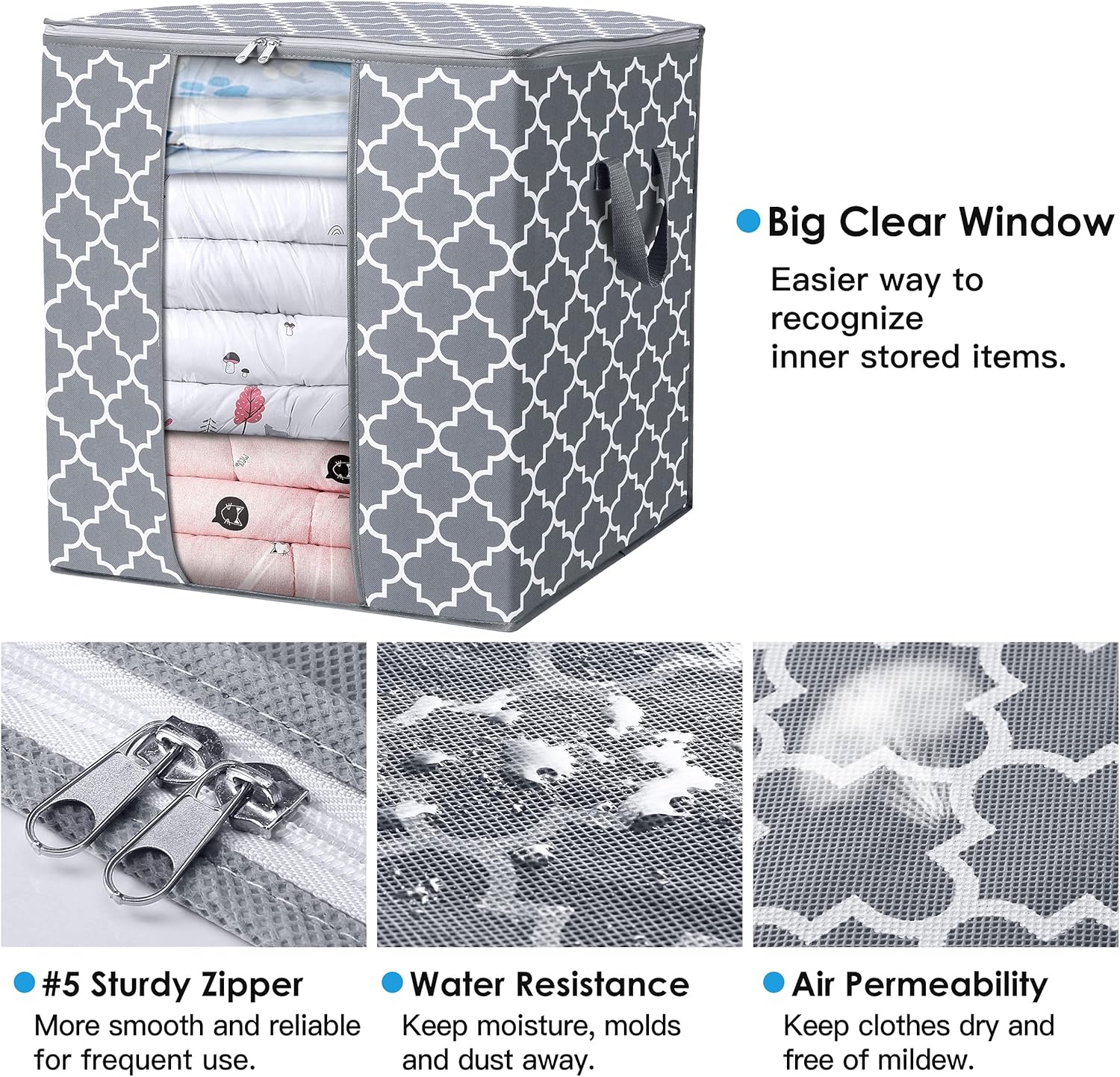 WISELIFE Storage Bags 4 Pack/100L Large Blanket Clothes Organization and Storage Containers for Comforters,Bedding, Foldable Organizer with Reinforced Handle, Clear Window, Sturdy Zippers,Light Gray