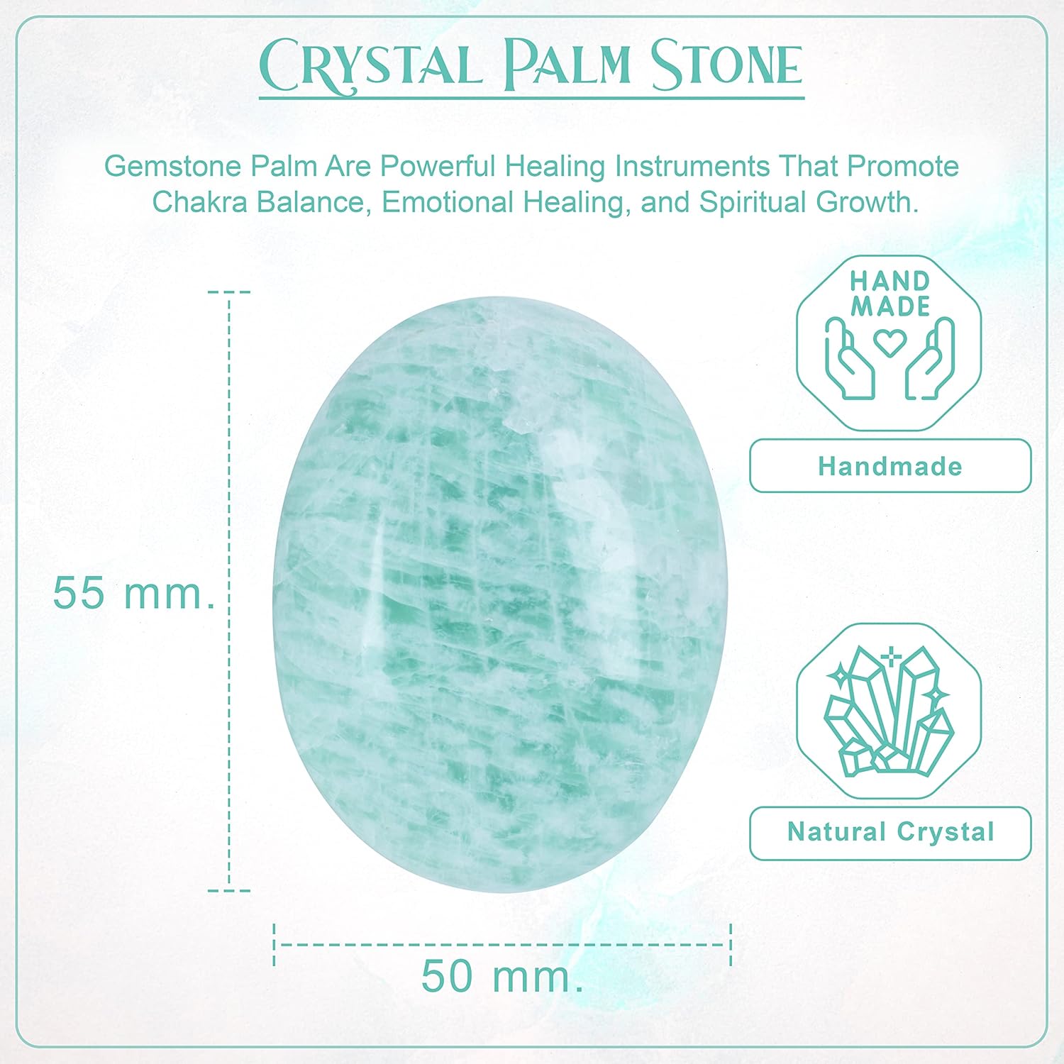 Crocon 50mm Amazonite Large Palm Stone 900+ Carats Pocket Worry Stones for Natural Chakra Balancing Reiki Healing Stones and Crystal Healing Spa Energy Crystals Gifts for Women