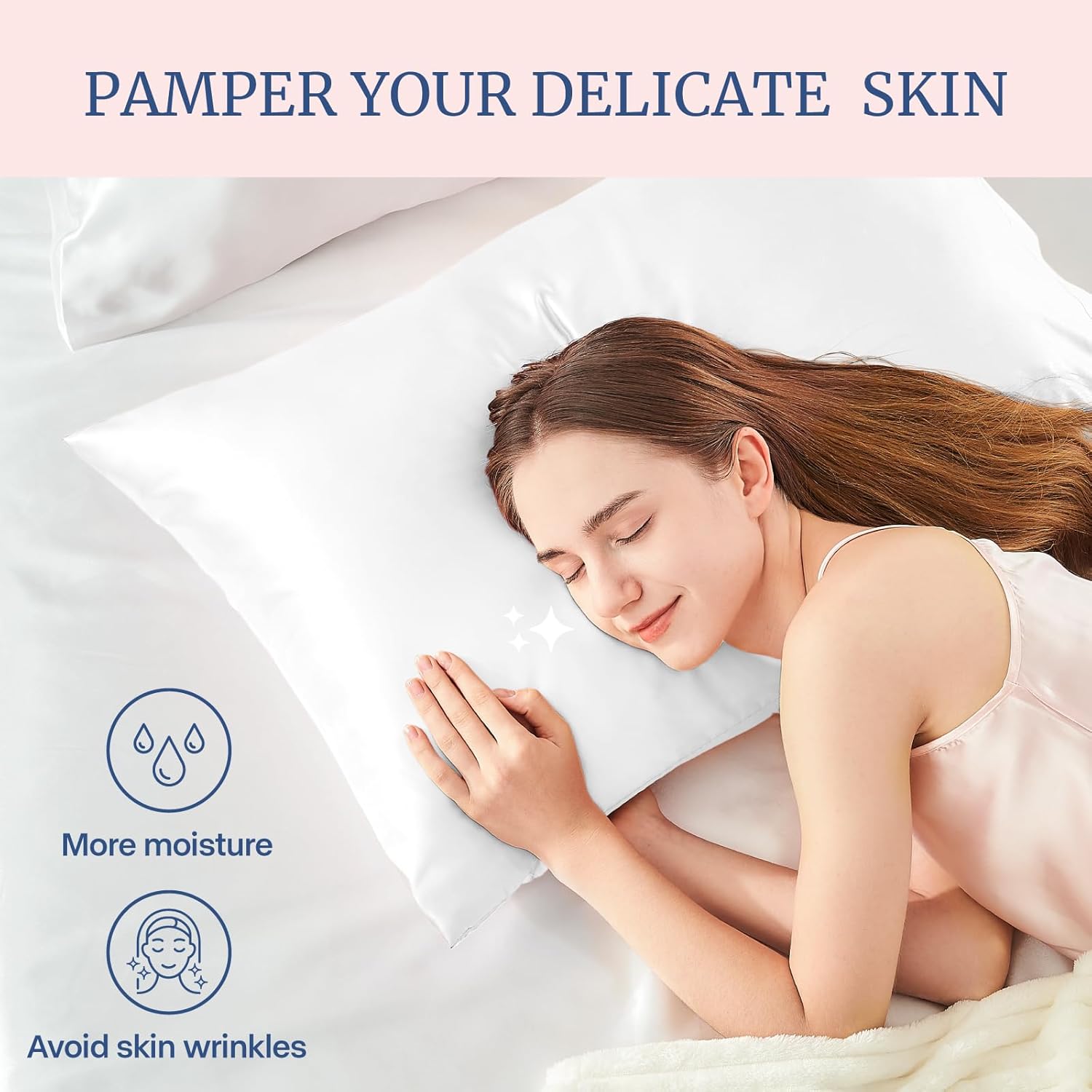 BEDELITE Satin Pillowcase for Hair and Skin, Super Soft and Cooling Similar to Silk Pillow Cases 2 Pack with Envelope Closure, Gift for Women Men(20"x36" King Size, White)