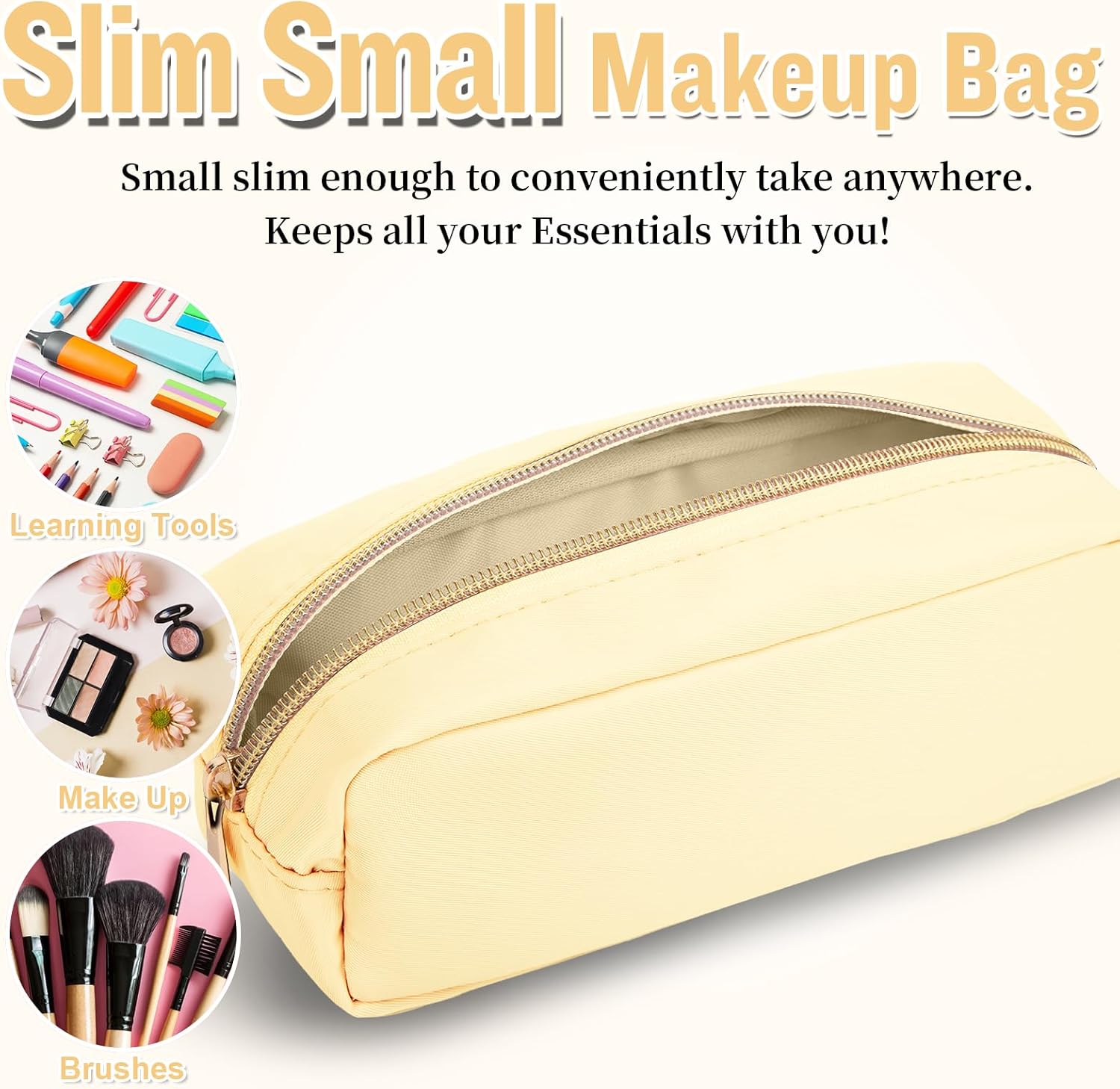 - ❤【Premium Materials】Slim Small makeup bag is made of high-quality nylon waterproof material and durable gold zipper, which does not fade, has no peculiar smell, and is durable. Stylish appearance, easy to wipe clean, dustproof and waterproof. The makeup pouch interior is covered with thick sponge to protect your belongings at all times.