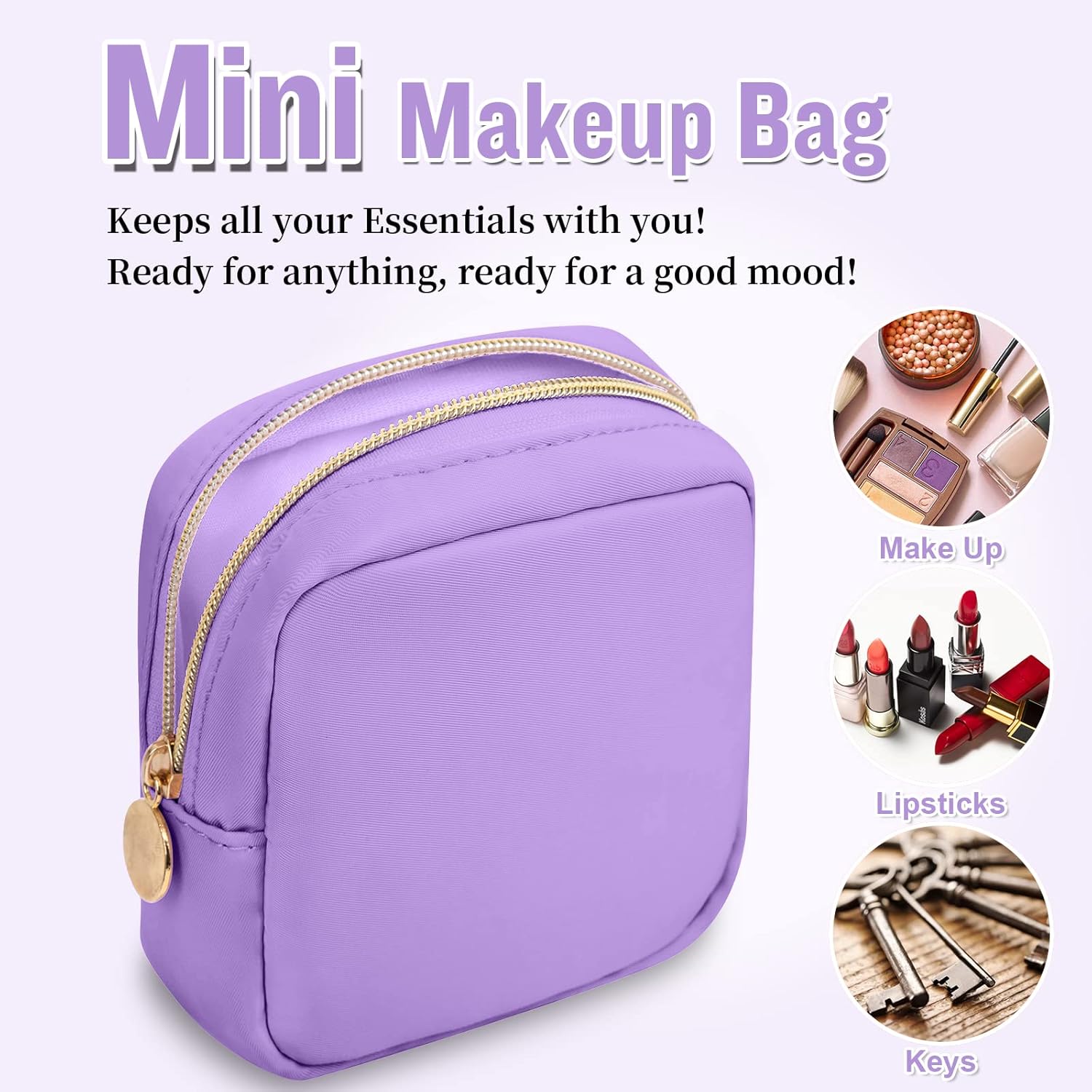 Nylon Mini Makeup Bag for Purse, Preppy Small Cute Makeup Bag Cosmetic Zipper Pouch Purse, Waterproof Travel Coin Pouch Sanitary Napkin Storage Bag Clutch Makeup Organizer for Women Men Girls(Purple)