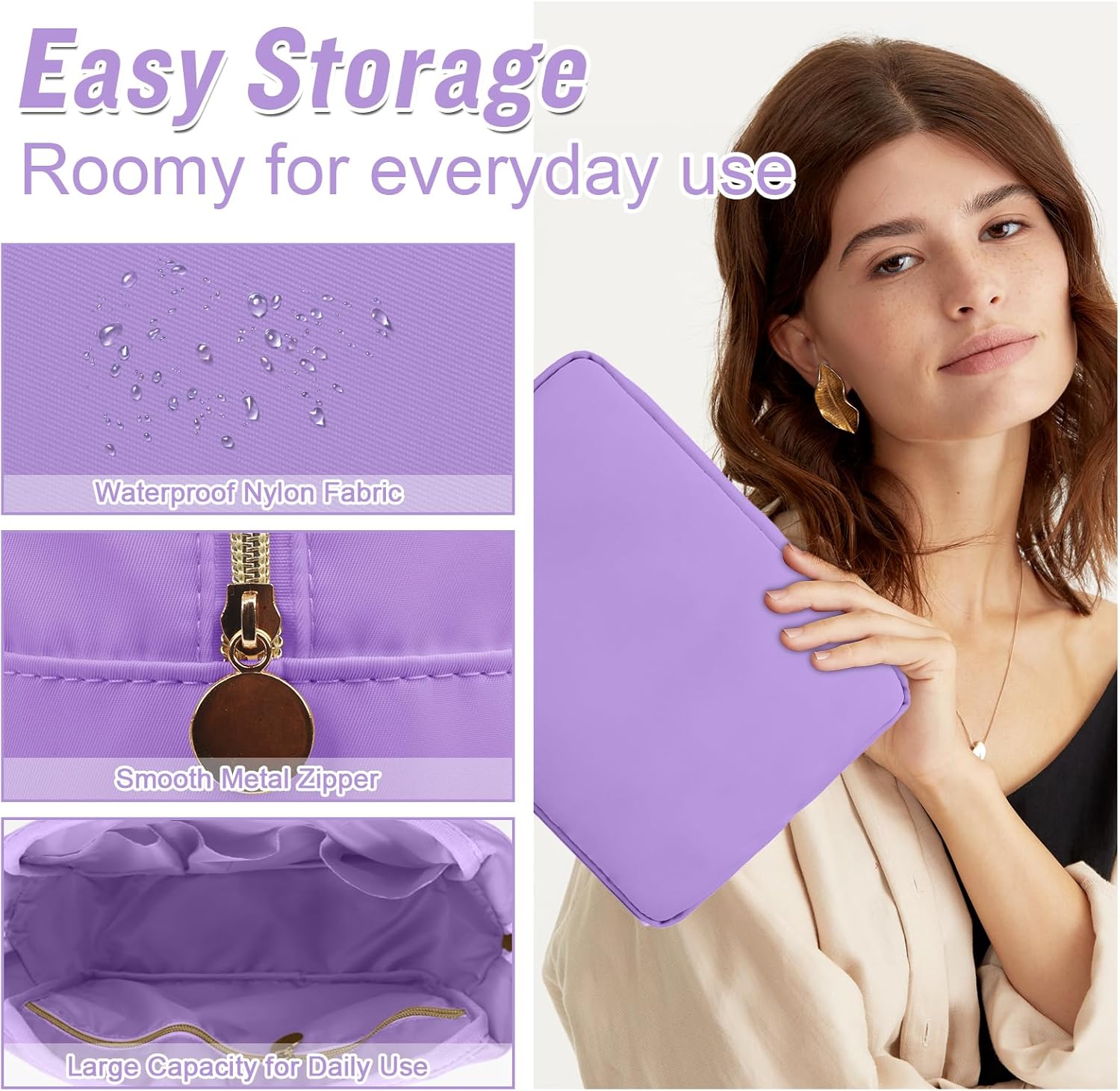 - ❤【DIY Your Bag & Patches Friendly】Large makeup bag material allows you to easily attach your favorite patches and fits all travel toiletries. You can put any chenille letters or patterns you want on it, "STUFF" SNACK "BEACH" and so on to design your unique travel makeup bag. Make your preppy makeup bag very interesting and vivid!