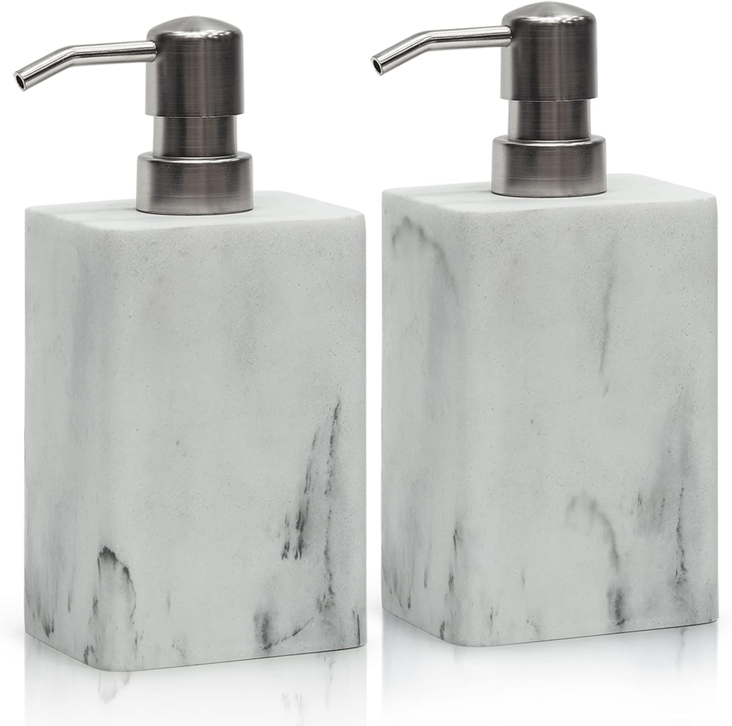 15Oz White Marble Style Resin Soap Dispenser Set of 2,Suanti Hand and Dish Soap Dispenser for Bathroom Counter&Kitchen Sink Decor,Refillable Soap Bottle with Easy-Press Pump for Liquid Soap or Lotion
