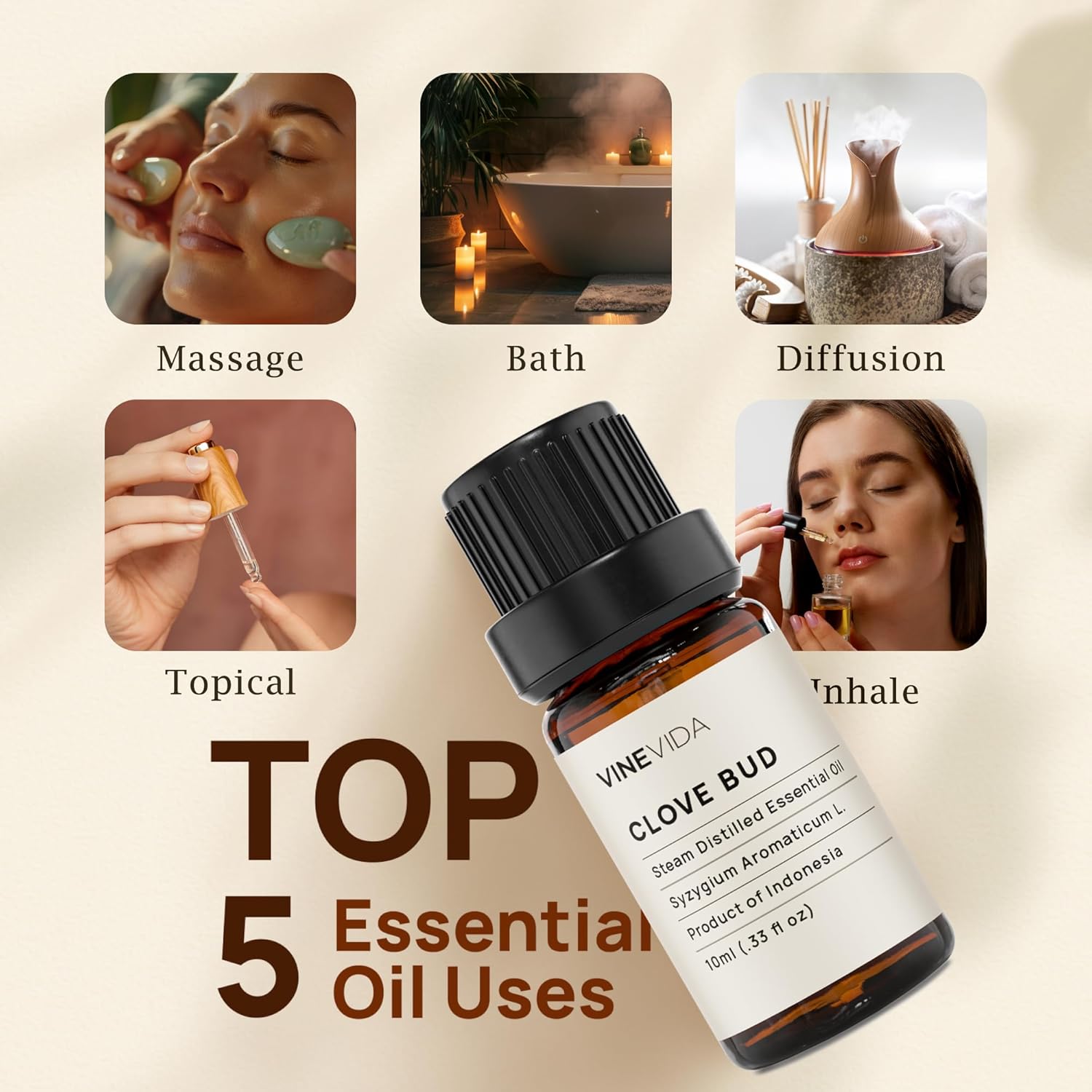 VINEVIDA Clove Essential Oil - Undiluted Clove Oil - Candle Scent - DIY Candle Scents - 10 mL for Candlemaking, Soap Making, Safe for Skin