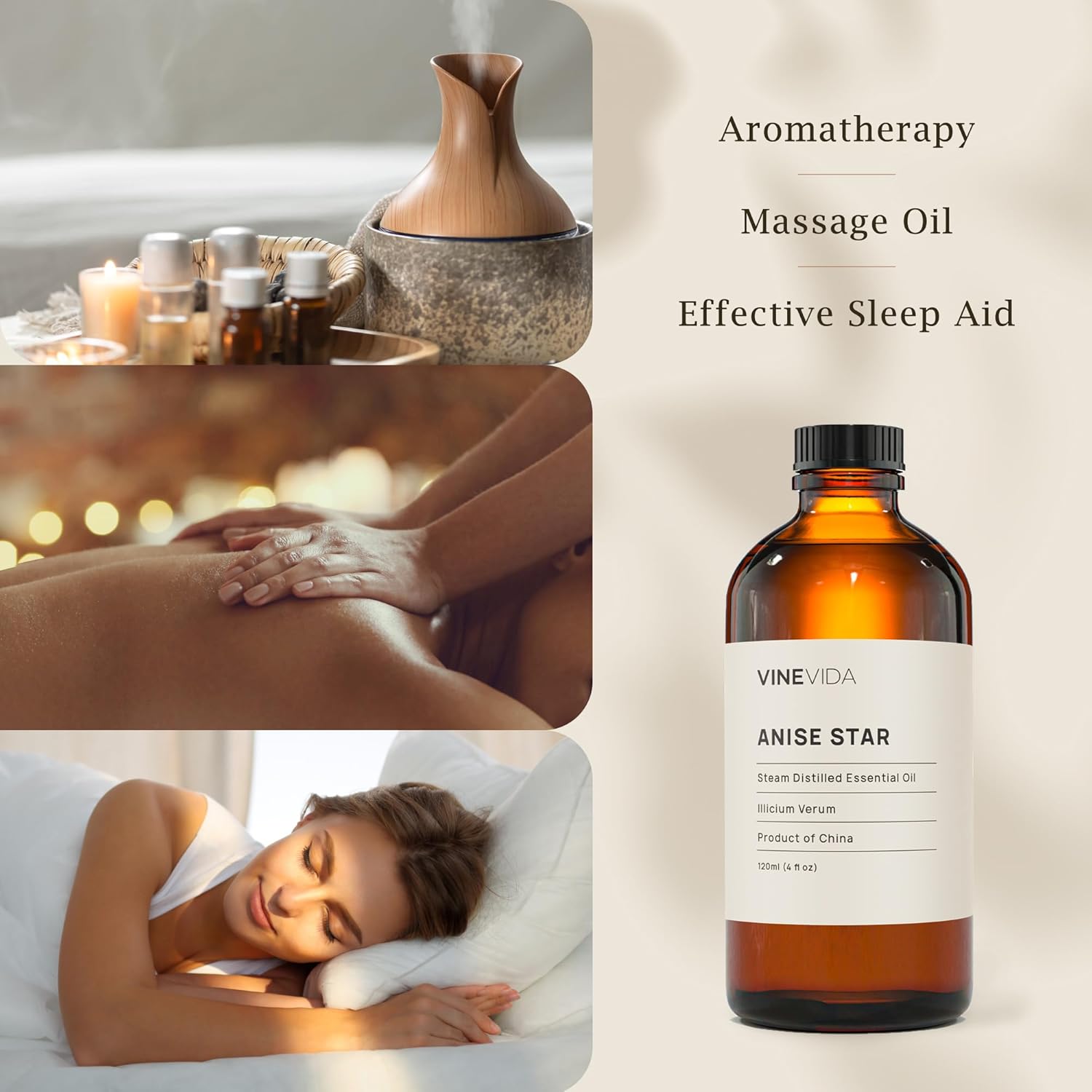 VINEVIDA Anise Star Essential Oil 4 oz - Undiluted Anise Star Oil 4 oz - Anise Star Candle Oil Scent - DIY Candle Scents for Candlemaking - Bulk Essential Oil for Soap Making Safe for Skin