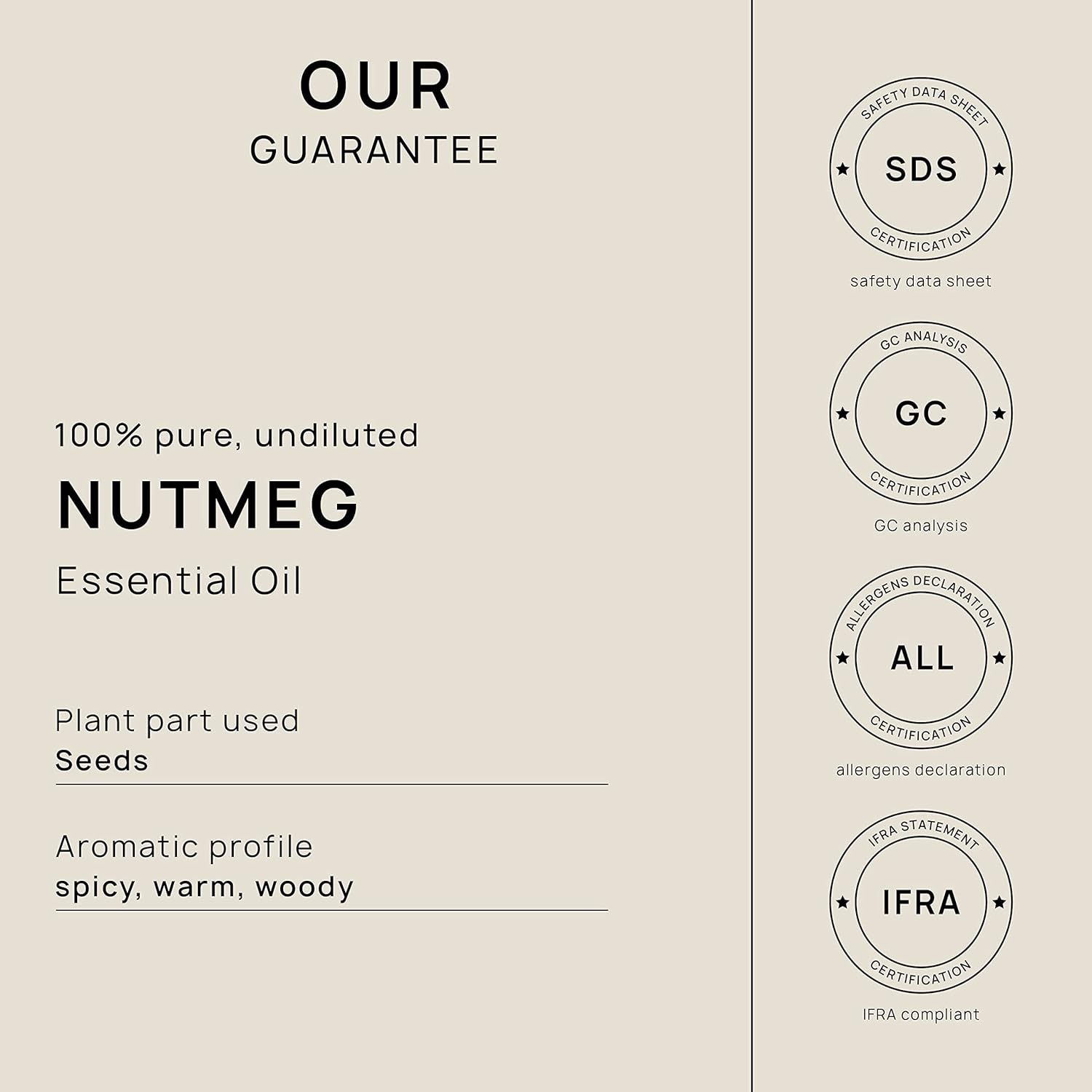 - Quality - We produce our Nutmeg essential oil using pure, natural, and raw ingredients.