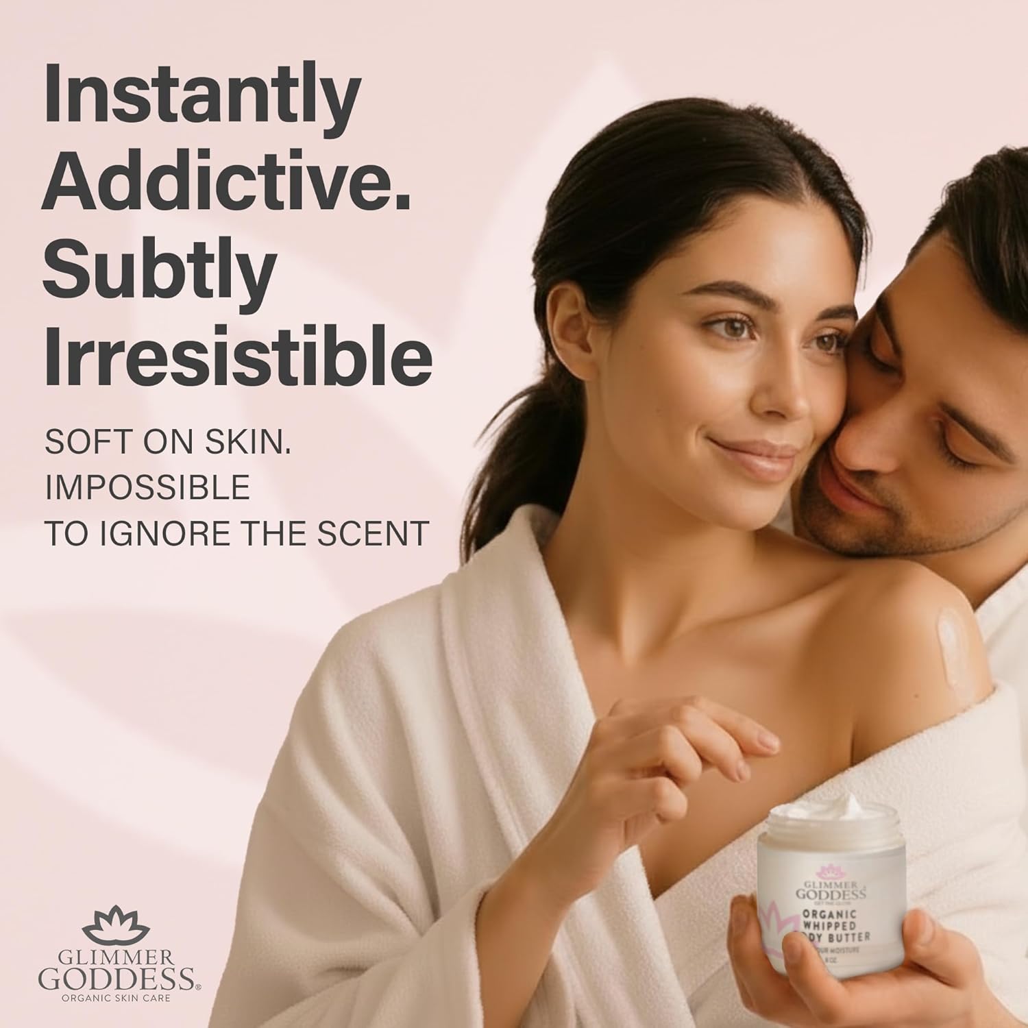 Glimmer Goddess Organic Whipped Body Butter for Women - Moisturizer Cream with Shea & Cocoa Butter, Almonds & Coconut Oil - Orange Creamsicle, 8oz