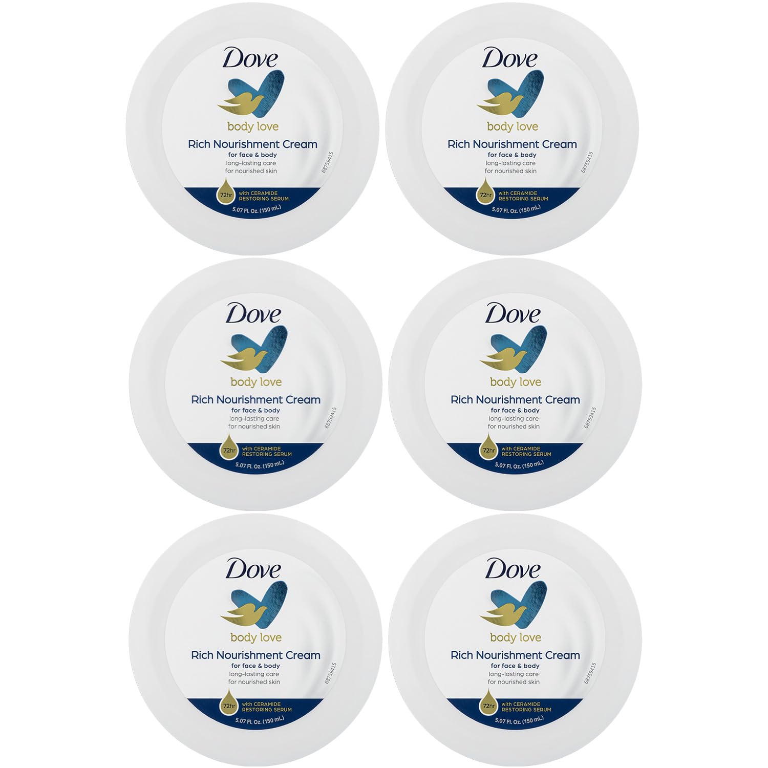 Dove Body Love Rich Nourishment Cream, Face, Hand & Body Lotion for Extremely Dry Skin, Fast-Absorbing 72-Hour Moisturizing Cream with Ceramide Serum, 5.07 Fl Oz (Pack of 6)