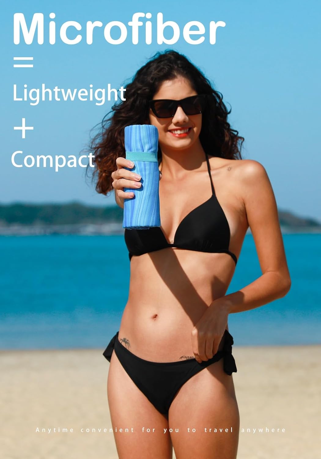 Microfiber Lightweight Beach Towel Sand Free Quick Dry Absorbent Thin Compact Towels for Swimming Pool Camping Beach Accessories Large Easy Pack Travel Things for Vacation Essentials Gift Adult