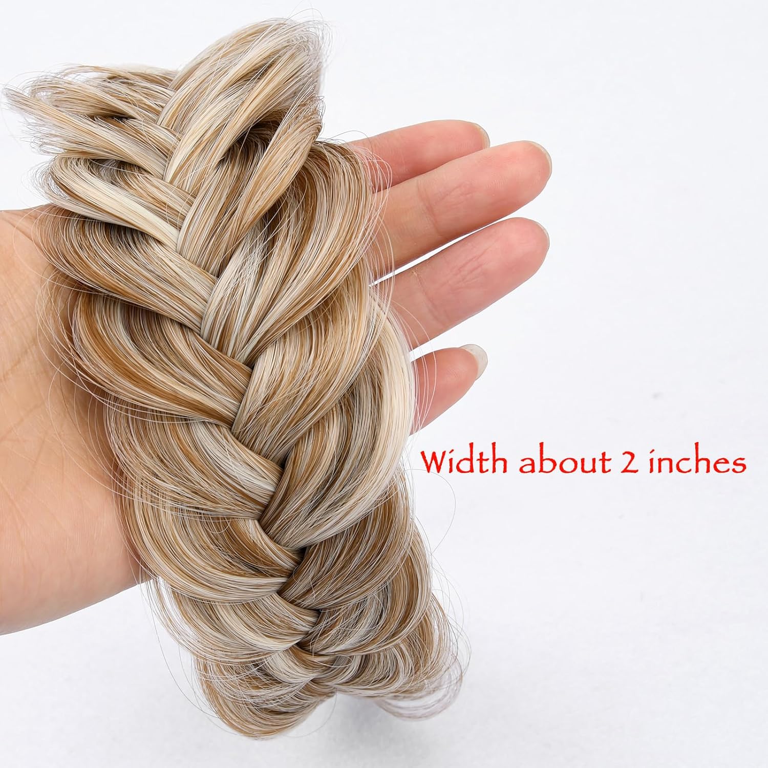 DIGUAN Wide Messy Braided Headband With Teeth Synthetic Hair Plaited Headband High Elasticity Braids Fishtail Braided Hair Band Hairpiece for Girls Women (Sandy Blonde)