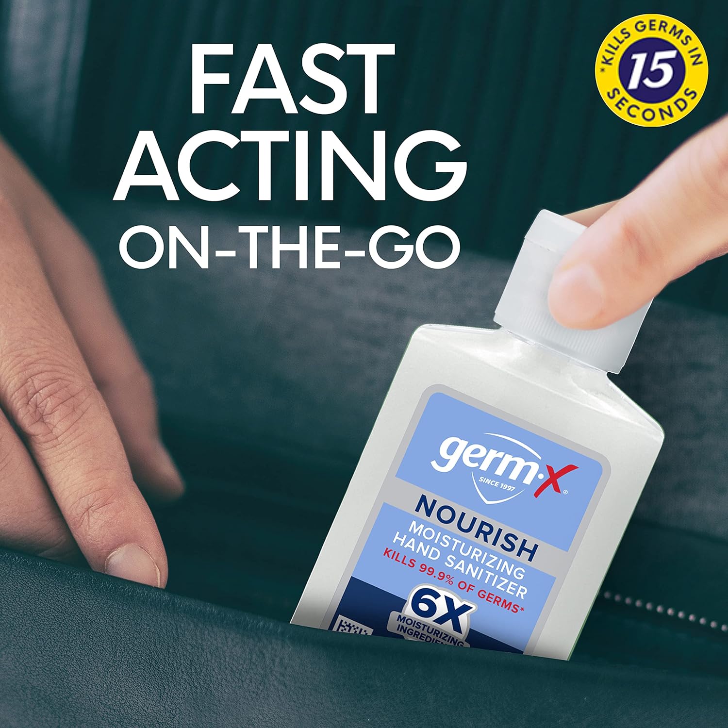 Germ-X Nourish Hand Sanitizer, 2-in-1 Moisturizing and Sanitizing Formula with Shea Butter, Vitamin E & Aloe, Non-Greasy, Mini Travel Size for On-The-Go, Back to School Supplies, 2 Fl Oz (Pack of 24)