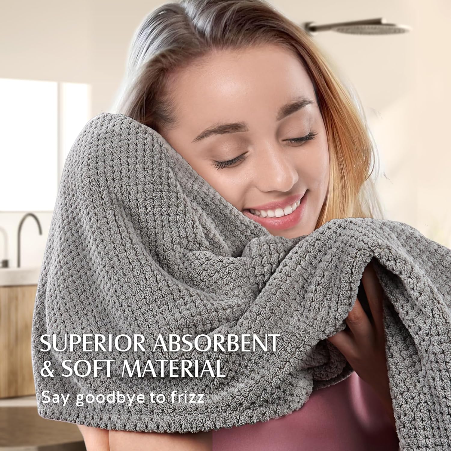 - Larger Size for All Hair Types: 30'' x 10'' microfiber hair towel wrap, larger than standard twist towels, ensuring complete coverage for all hair types—long, curly, straight, wavy, thick, or short. Lightweight and comfortable, avoiding neck pain or strain on the head