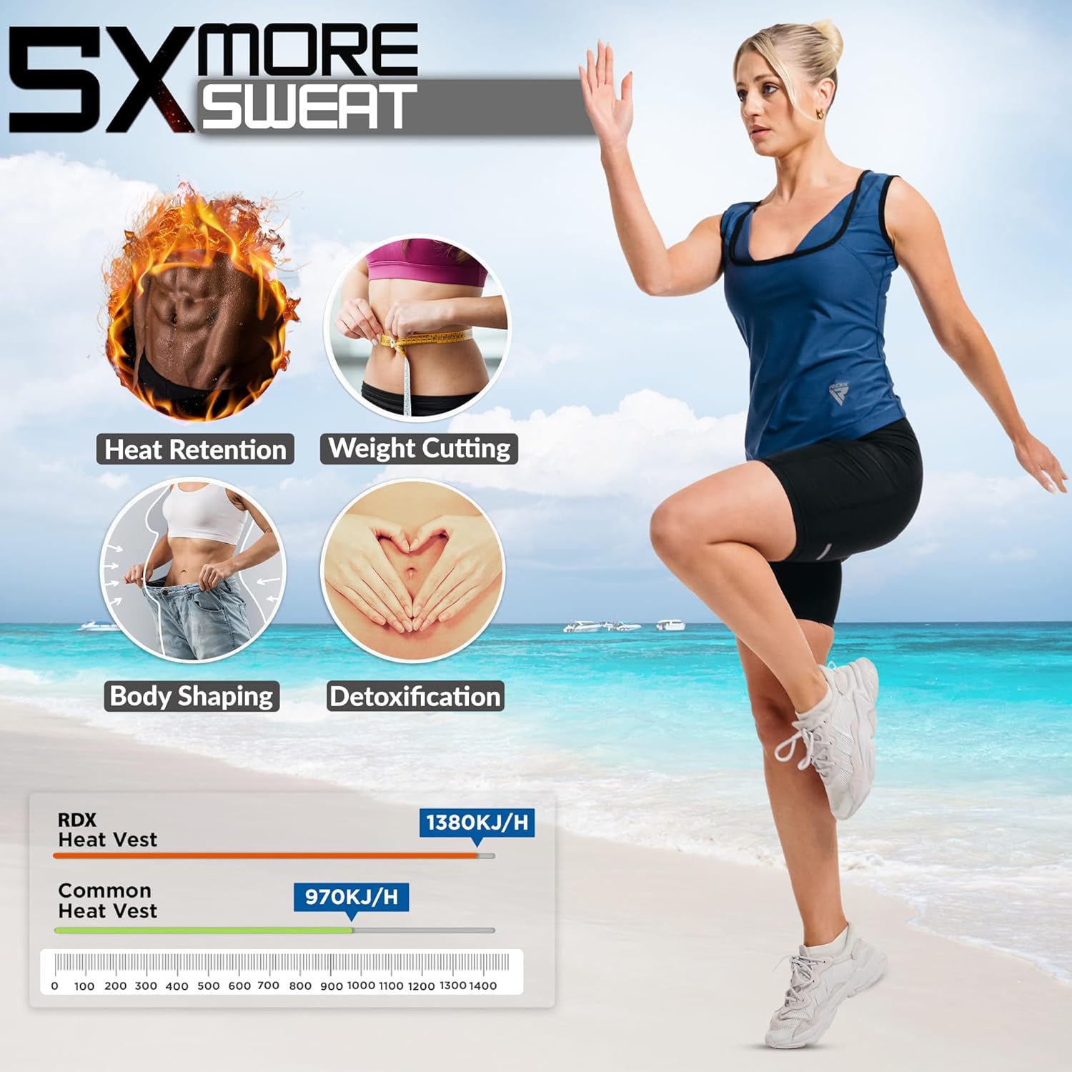 - SWEAT HARD, SHAPE YOUR BODY – Ready to perfectly shape your body? The RDX sauna shape wear vests are designed with meticulous attention to detail and are perfect for shaping and accentuating your body. Our sauna vests feature a revolutionary REACH and OEKO TEX 100 certified fabric, the blue inner heat reflective layer promotes better heat retention and fat burning. Experience faster weight-cutting and effortlessly target your abs, lower back, chest, and waist for a beautifully shaped figure.