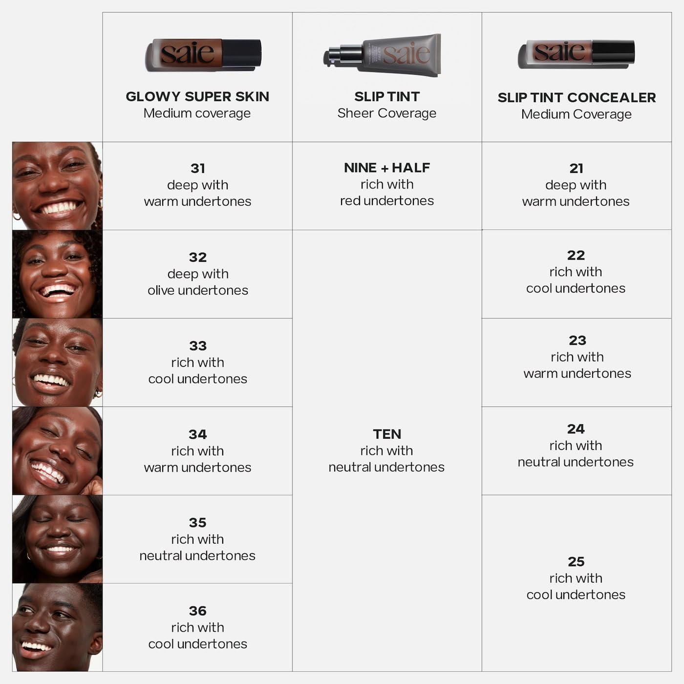 Saie Slip Tint Tinted Moisturizer with SPF 35 - Light Coverage, Glowy Skin Tint & Mineral Sunscreen for Face with Hydrating Hyaluronic Acid - Summer Makeup Essential - Shade Ten (1.35 oz)