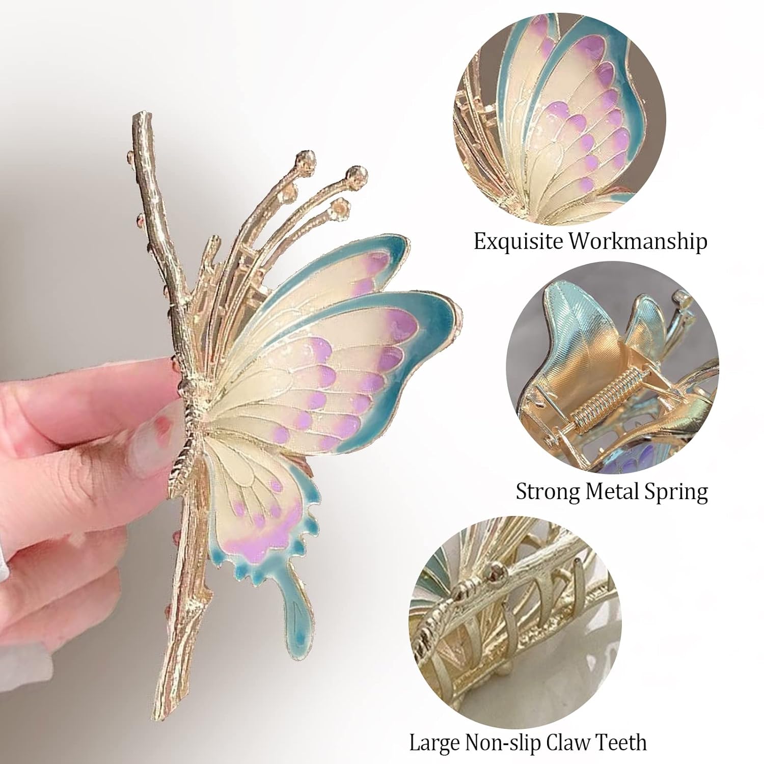 - [High-Quality Materials] Our hair clip is made of high-quality strong and durable metal material, smooth and textured. Spring strength is moderate, can be very good to fix your hair, even after a long time of use will not loosen. The decoration on the hair clip is also made of high-quality materials, very fine workmanship.