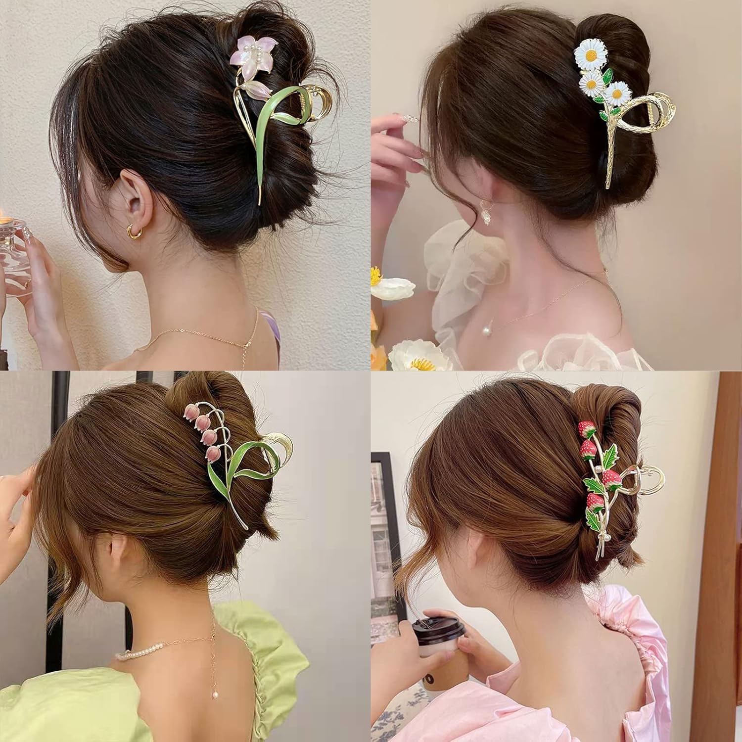 - [Multiple Styles] The package includes 6 different styles of metal hair clips, butterfly hair clips, butterfly hair clips with rhinestone, pink bell orchid hair clips, small daisy hair clips, purple lily hair clips, strawberry hair clips. A variety of styles of clips are enough to meet your daily use and special occasions, such as weddings, parties, etc. Wearing it can make your hair more exquisite and make you look more charming and elegant.