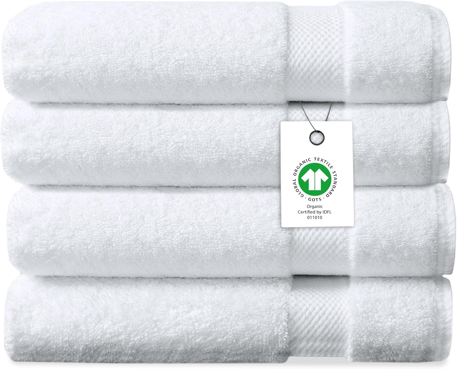Delara Organic Cotton Luxuriously Plush Bath Sheet Pack of 4 | GOTS & OEKO-TEX Certified | Premium Hotel Quality Towels | Feather Touch Technology|650 GSM Long Staple|Soft, Quick Dry & Ultra-Absorbent