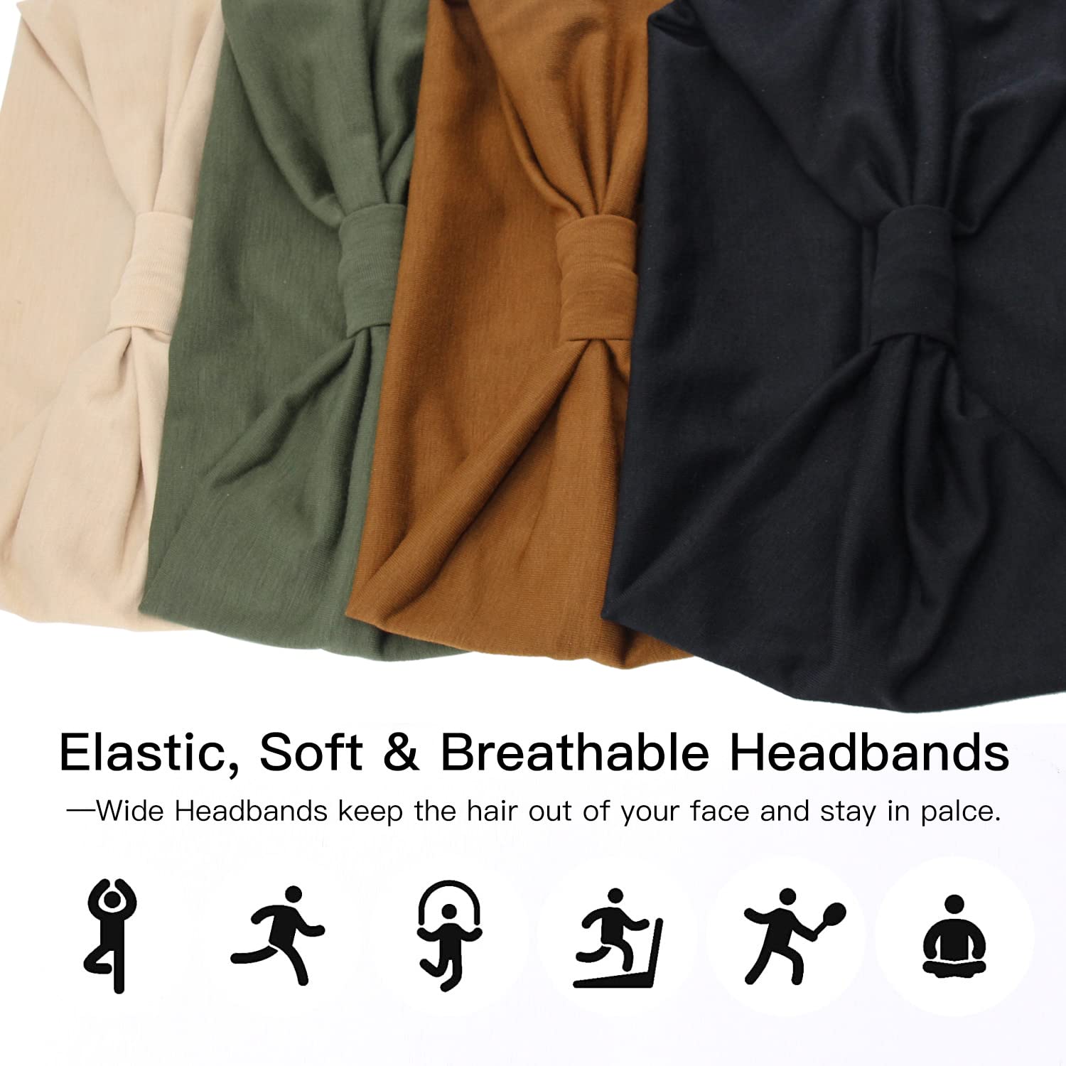 - High Stretchy,Sweat Wicking,Washable:Consider the head size and comfy of most people, thick headbands specially adopted high-quality yoga fabrics, 12% Lycra spandex ensures women headbands super stretchy, All-day Extremely comfort without hurting your head. Workout headbands easily absorbs sweat from forehead, keep head cooler and drier. Soft headbands for women can be washed without any worries of shrinking or losing color.
