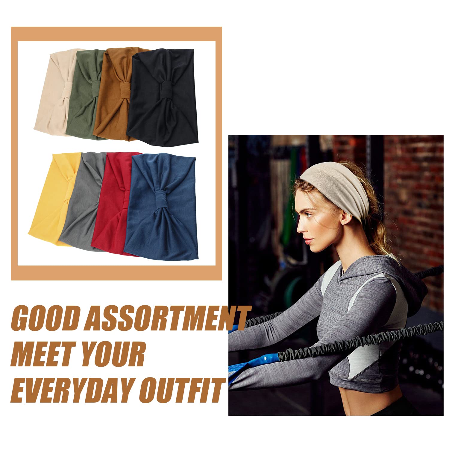 Yeshan Wide Headbands for Women Non Slip Turban Headband, Boho Elastic Headband Sweat Bands Yoga Hair Bands for Women's Hair,Pack of 8