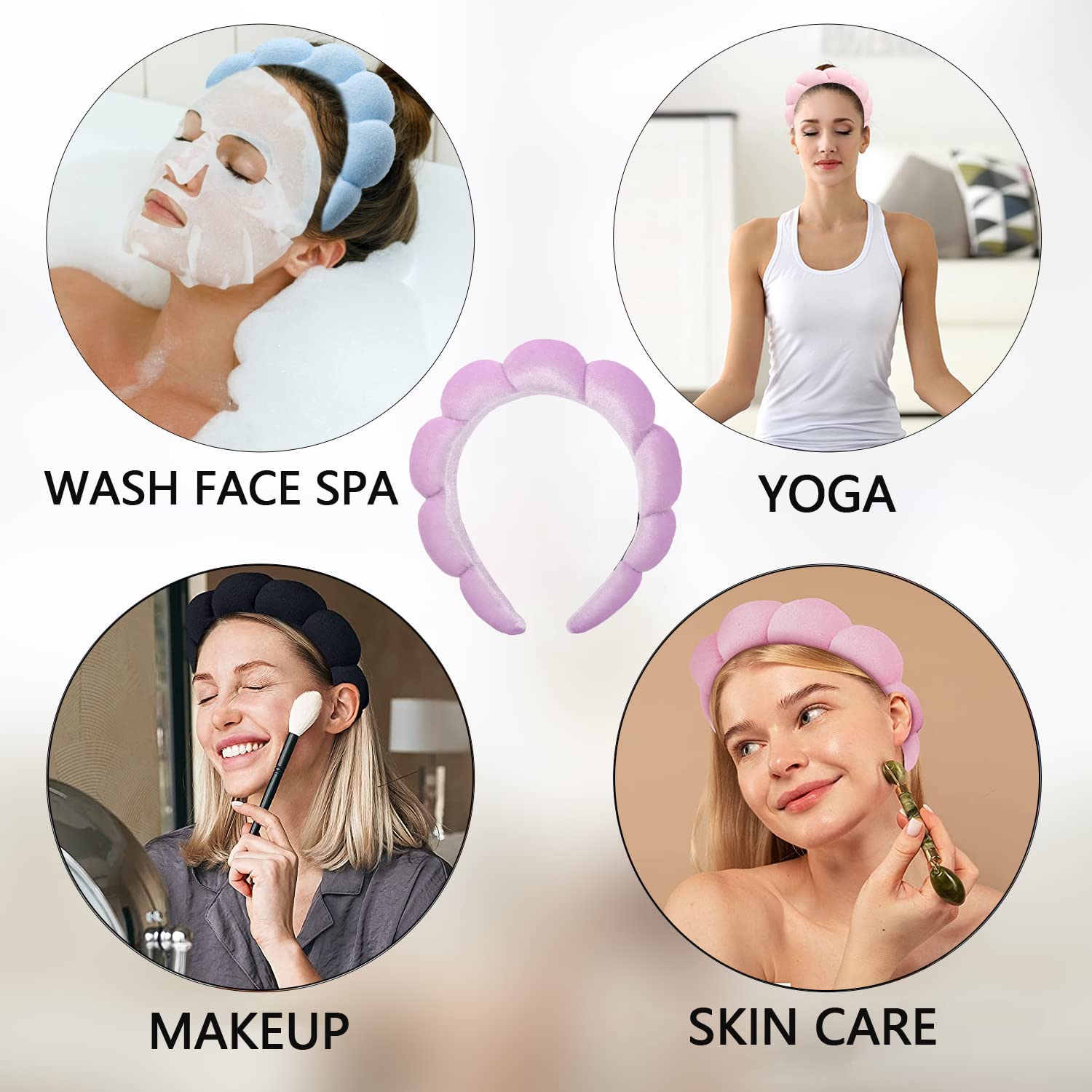 - SPA MAKEUP HEADBAND :Made with sponge lining and terry cloth covering, this spa headband is soft and comfortable without squeezing the head to wear while keeping hair away from the face.